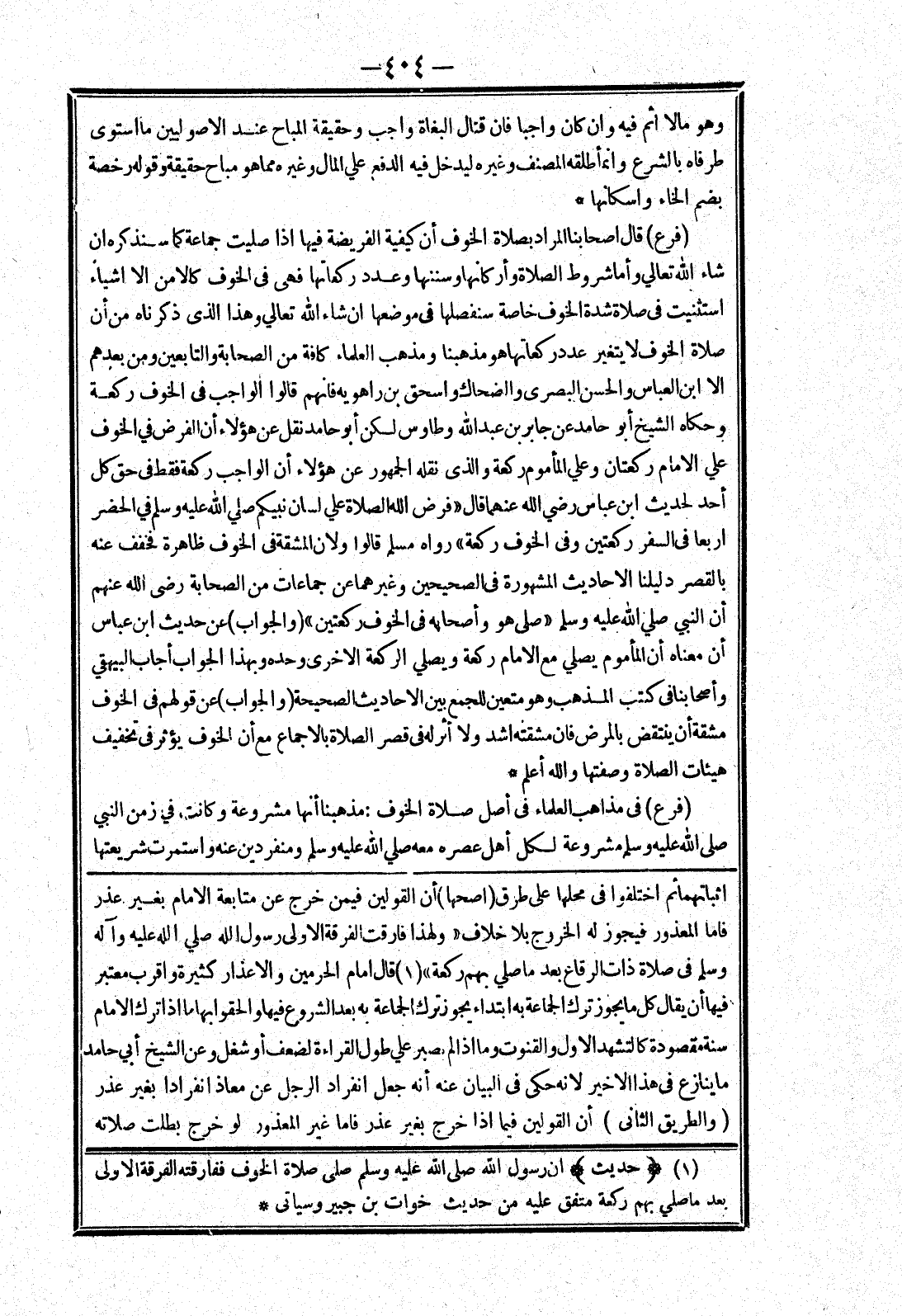 فاما المعذور فيجوز له الخروج بلا خلاف " ولهذا فارقت الفرقة الاولى رسول الله صلي الله عليه وسلم وسلم في صلاة ذات الرقاع بعدما صلي بهم ركعة " قال امام الحرمين والاعذار كثيرة واقرب معتبر فيها أن يقال كل ما يجوز ترك الجماعة به ابتداء يجوز ترك الجماعة به بعد الشروع فيها والحقوا بها ما إذا ترك الامام سنة مقصودة كالتشهد الاول والقنوت وما إذا لم يصبر علي طول القراءة لضعف أو شغل وعن الشيخ أبي حامد ما ينازع في هذا الاخير لان حكى في البيان عنه أنه جعل انفراد الرجل عن معاذ انفرادا بغير عذر (والطريق الثاني) أن القولين فيما إذا خرج بغير عذر فاما غير المعذور لو خرج بطلت صلاته