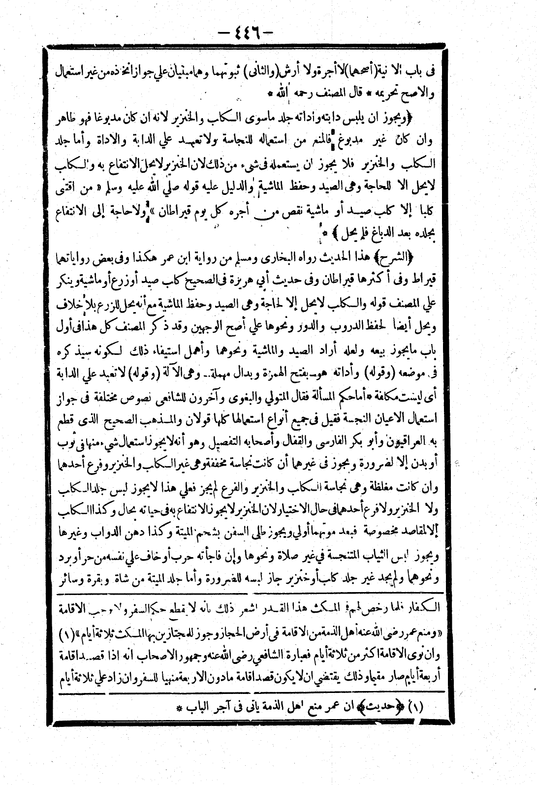 الكفار فلما رخص لهم في المكث هذا القدر اشعر ذلك بانه لا يقطع حكم السفر ولا يوجب الاقامة " ومنع عمر رضى الله عنه أهل الذمة من الاقامة في أرض الحجاز وجوز للمجتازين بها المكث ثلاثة أيام " وان نوى الاقامة اكثر من ثلاثة أيام فعبارة الشافعي رضى الله عنه وجمهور الاصحاب انه إذا قصد اقامة أربعة أيام صار مقيما وذلك يقتضي ان لا يكون قصد اقامة ما دون الاربعة منهيا للسفر وان زاد علي ثلاثة أيام
