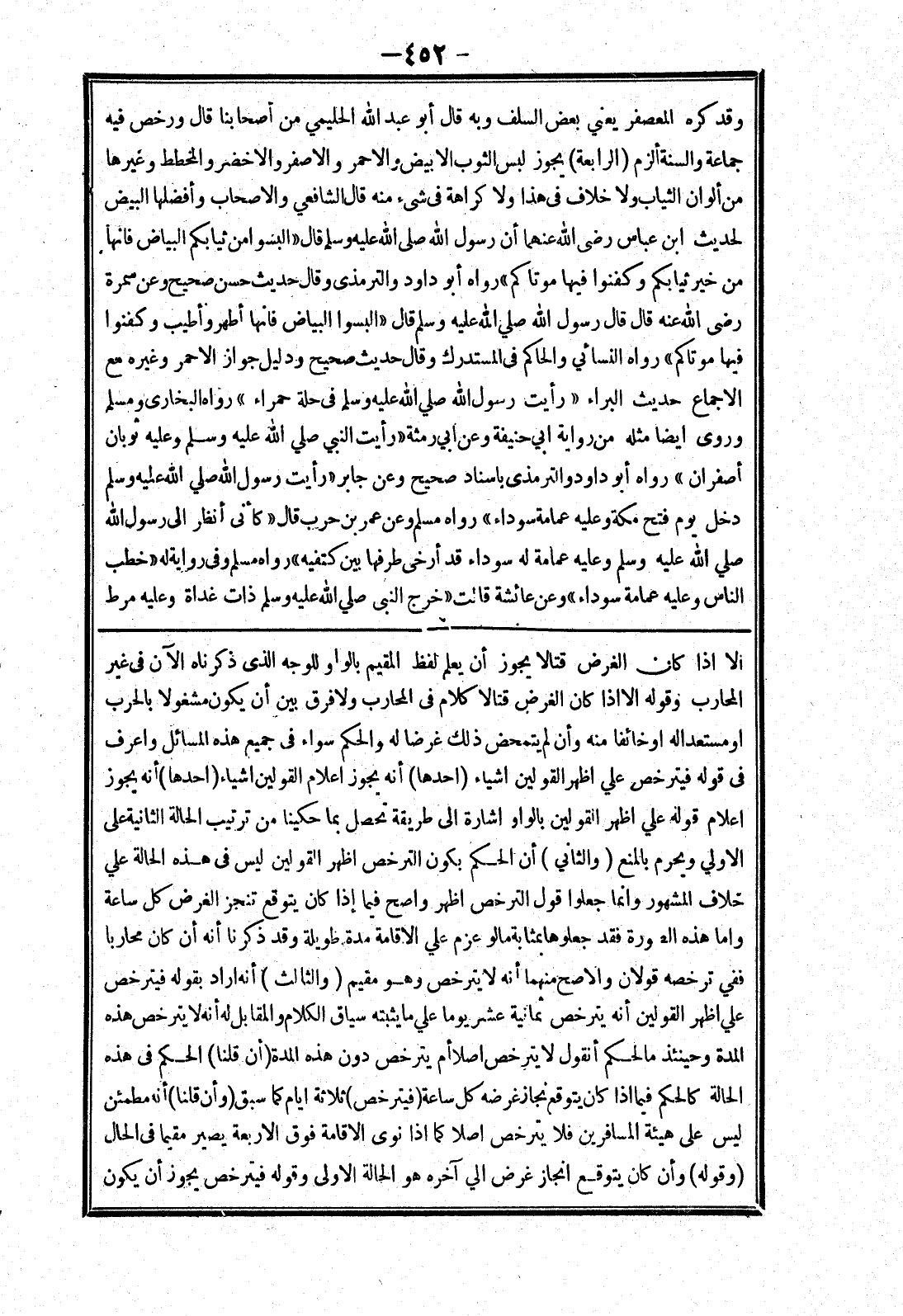 الا إذا كان الغرض قتالا يجوز أن يعلم لفظ المقيم بالواو للوجه الذى ذكرناه الآن في غير المحارب وقوله الا إذا كان الغرض قتالا كلام في المحارب ولا فرق بين أن يكون مشغولا بالحرب أو مستعدا له أو خائفا منه وأن لم يتمحض ذلك غرضا له والحكم سواء في جميع هذه المسائل واعرف في قوله فيترخص علي اظهر القولين اشياء (احدها) أنه يجوز اعلام القولين اشياء (احدها) أنه يجوز اعلام قوله علي اظهر القولين بالواو اشارة إلى طريقة تحصل بما حكينا من ترتيب الحالة الثانية على الاولي ويحرم بالمنع (والثاني) أن الحكم بكون الترخص اظهر القولين ليس في هذه الحالة علي خلاف المشهور وانما جعلوا قول الترخص اظهر واصح فيما إذا كان يتوقع تنجز الغرض كل ساعة واما هذه الصورة فقد جعلوها بمثابة ما لو عزم علي الاقامة مدة طويلة وقد ذكرنا أنه أن كان محاربا ففي ترخصه قولان والاصح منهما أنه لا يترخص وهو مقيم (والثالث) أنه اراد بقوله فيترخص علي اظهر القولين أنه يترخص ثمانية عشر يوما علي ما يثبته سياق الكلام والمقابل له أنه لا يترخص هذه المدة وحينئذ ما لحكم أنقول لا يترخص اصلا أم يترخص دون هذه المدة (أن قلنا) الحكم في هذه الحالة كالحكم فيما إذا كان يتوقع نجاز غرضه كل ساعة (فيترخص) ثلاثة ايام كما سبق (وأن قلنا) أنه مطمئن ليس على هيئة المسافرين فلا يترخص اصلا كما إذا نوى الاقامة فوق الاربعة يصير مقيما في الحال