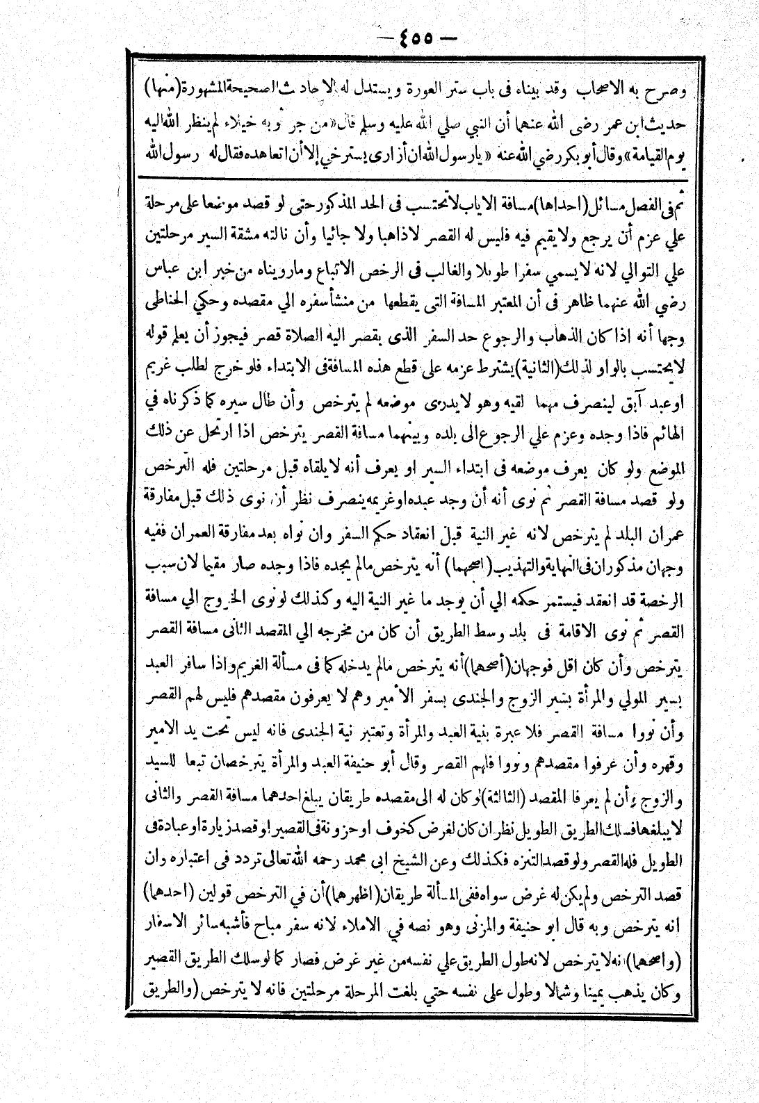 القصر ثم نوى الاقامة في بلد وسط الطريق أن كان من مخرجه الي المقصد الثاني مسافة القصر يترخص وأن كان اقل فوجهان (أصحهما) أنه يترخص ما لم يدخله كما في مسألة الغريم وإذا سافر العبد بسير المولي والمرأة بسير الزوج والجندى بسفر الامير وهم لا يعرفون مقصدهم فليس لهم القصر وأن نووا مسافة القصر فلا عبرة بنية العبد والمرأة وتعتبر نية الجندي فانه ليس تحت يد الامير وقهره وأن عرفوا مقصدهم ونووا فلهم القصر وقال أبو حنيفة العبد والمرأة يترخصان تبعا للسيد والزوج وأن لم يعرفا المقصد (الثالثة) لو كان له إلى مقصده طريقان يبلغ احدهما مسافة القصر والثانى لا يبلغها فسلك الطريق الطويل نظر ان كان لغرض كخوف أو حزونة في القصير أو قصد زيارة أو عبادة في الطويل فله القصر ولو قصد التنزه فكذلك وعن الشيخ ابى محمد رحمه الله تعالى تردد في اعتباره وان قصد الترخص ولم يكن له غرض سواه ففى المسألة طريقان (اظهرهما) أن في الترخص قولين (احدهما) انه يترخص وبه قال أبو حنيفة والمزنى وهو نصه في الاملاء لانه سفر مباح فأشبه سائر الاسفار (واصحهما) انه لا يترخص لانه طول الطريق علي نفسه من غير غرض فصار كما لو سلك الطريق القصير وكان يذهب يمينا وشمالا وطول على نفسه حتي بلغت المرحلة مرحلتين فانه لا يترخص (والطريق