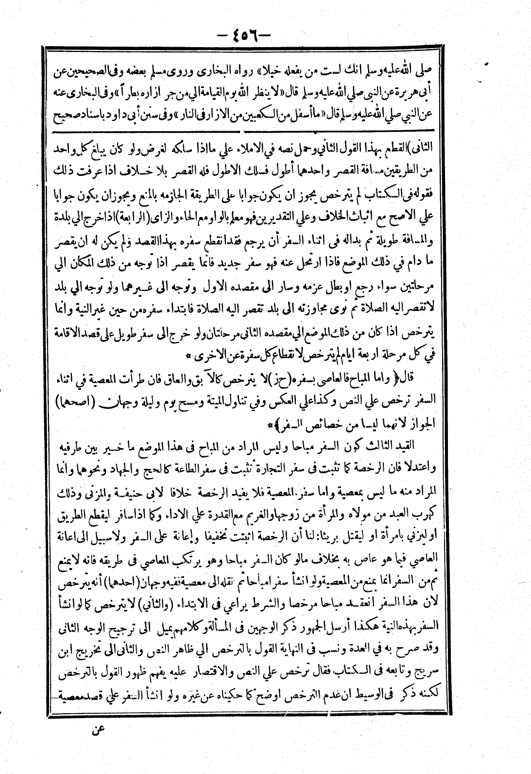 في كل مرحلة اربعة ايام لم يترخص لانقطاع كل سفرة عن الاخرى * قال (واما المباح فالعاصي بسفره (ح ز) لا يترخص كالآبق والعاق فان طرأت المعصية في اثناء السفر ترخص علي النص وكذا علي العكس وفي تناول الميتة ومسح يوم وليلة وجهان (اصحهما) الجواز لانها ليسا من خصائص السفر) * القيد الثالث كون السفر مباحا وليس المراد من المباح في هذا الموضع ما خير بين طرفيه واعتدلا فان الرخصة كما تثبت في سفر التجارة تثبت في سفر الطاعة كالحج والجهاد ونحوهما وانما المراد منه ما ليس بمعصية واما سفر المعصية فلا يفيد الرخصة خلافا لابي حنيفة والمزنى وذلك كهرب العبد من مولاه والمرأة من زوجها والغريم مع القدرة علي الاداء وكما إذا سافر ليقطع الطريق أو ليزني بامرأة أو ليقتل بريئا: لنا أن الرخصة اثبتت نخفيفا وإعانة على السفر ولا سبيل إلى اعانة العاصي فيما هو عاص به بخلاف ما لو كان السفر مباحا وهو يرتكب المعاصي في طريقه فانه لا يمنع ثم من السفر انما يمنع من المعصية ولو انشأ سفرا مباحا ثم نقله إلى معصية ففيه وجهان (احدهما) أنه يترخص لان هذا السفر انعقد مباحا مرخصا والشرط يراعي في الابتداء (والثاني) لا يترخص كما لو انشأ السفر بهذه النية هكذا أرسل الجمهور ذكر الوجهين في المسألة وكلامهم يميل إلى ترجيح الوجه الثاني وقد صرح به في العدة ونسب في النهاية القول بالترخص الي ظاهر النص والثانى إلى تخريج ابن سريج وتابعه في الكتاب فقال ترخص علي النص والاقتصار عليه يفهم ظهور القول بالترخص لكنه ذكر في الوسيط ان عدم الترخص اوضح كما حكيناه عن غيره ولو انشأ السفر علي قصد معصية