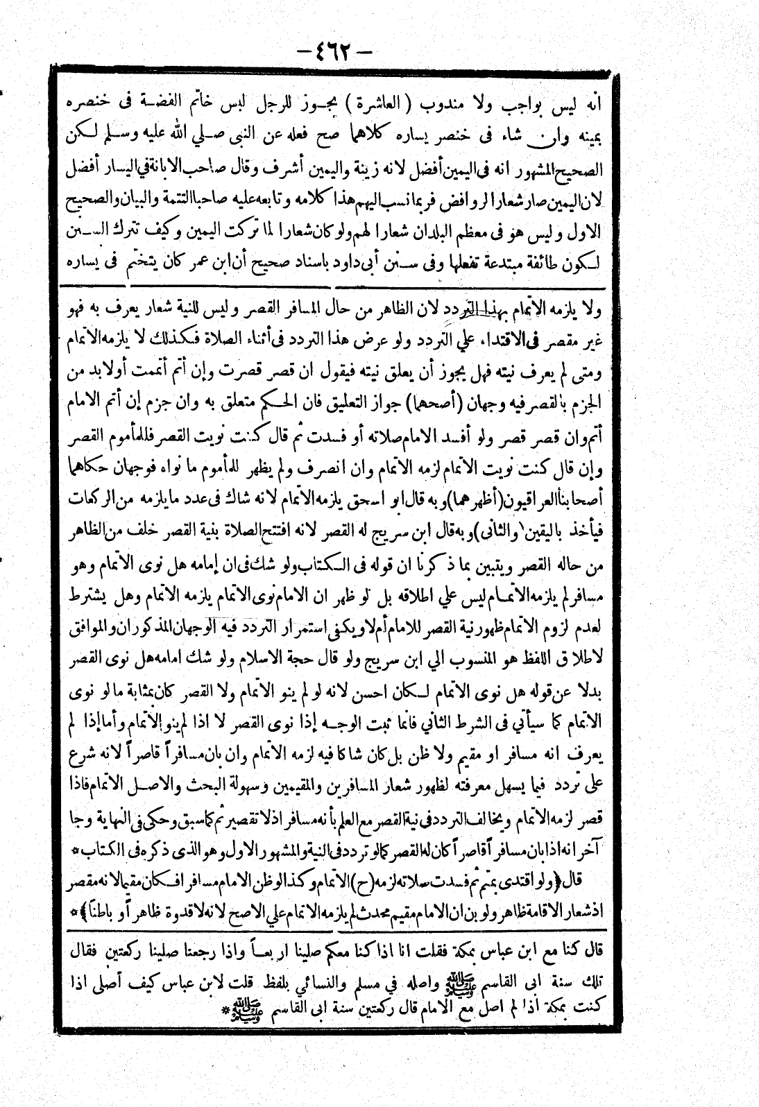 ولا يلزمه الاتمام بهذا التردد لان الظاهر من حال المسافر القصر وليس للنية شعار يعرف به فهو غير مقصر في الاقتداء علي التردد ولو عرض هذا التردد في أثناء الصلاة فكذلك لا يلزمه الاتمام ومتى لم يعرف نيته فهل يجوز أن يعلق نيته فيقول ان قصر قصرت وإن أتم أتممت أو لابد من الجزم بالقصر فيه وجهان (أصحهما) جواز التعليق فان الحكم متعلق به وان جزم إن أتم الامام أتم وان قصر قصر ولو أفسد الامام صلاته أو فسدت ثم قال كنت نويت القصر فللمأموم القصر وإن قال كنت نويت الاتمام لزمه الاتمام وان انصرف ولم يظهر للمأموم ما نواه فوجهان حكاهما أصحابنا العراقيون (أظهرهما) وبه قال أبو اسحق يلزمه الاتمام لانه شاك في عدد ما يلزمه من الركعات فيأخذ باليقين (والثانى) وبه قال ابن سريج له القصر لانه افتتح الصلاة بنية القصر خلف من الظاهر من حاله القصر ويتبين بما ذكرنا ان قوله في الكتاب ولو شك في ان إمامه هل نوى الاتمام وهو مسافر لم يلزمه الاتمام ليس علي اطلاقه بل لو ظهر ان الامام نوى الاتمام يلزمه الاتمام وهل يشترط لعدم لزوم الاتمام ظهور نية القصر للامام أم لا ويكفى استمرار التردد فيه الوجهان المذكوران والموافق لاطلاق اللفظ هو المنسوب الي ابن سريج ولو قال حجة الاسلام ولو شك امامه هل نوى القصر بدلا عن قوله هل نوى الاتمام لكان احسن لانه لو لم ينو الاتمام ولا القصر كان بمثابة ما لو نوى الاتمام كما سيأتي في الشرط الثاني فانما ثبت الوجه إذا نوى القصر لا إذا لم ينو الاتمام وأما إذا لم يعرف انه مسافر أو مقيم ولا ظن بل كان شاكا فيه لزمه الاتمام وان بان مسافرا قاصرا لانه شرع على تردد فيما يسهل معرفته لظهور شعار المسافرين والمقيمين وسهولة البحث والاصل الاتمام فإذا قصر لزمه الاتمام ويخالف التردد في نية القصر مع العلم بأنه مسافر إذ لا تقصير ثم كما سبق وحكى في النهاية وجا آخر انه إذا بان مسافرا قاصرا كان له القصر كما لو تردد في النية والمشهور الاول وهو الذى ذكره في الكتاب * قال (ولو اقتدى بمتم ثم فسدت صلاته لزمه (ح) الاتمام وكذا لو ظن الامام مسافرا فكان مقيما لانه مقصر إذ شعار الاقامة ظاهر ولو بان ان الامام مقيم محدث لم يلزمه الاتمام علي الاصح لانه لا قدوة ظاهرا وباطنا) *
