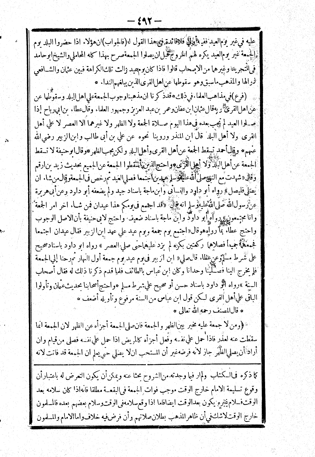 كما ذكره في الكتاب ولم ار فيما وجدته من الشروح بحثا عنه ويمكن أن يكون التعرض له باعتبار أن وقوع تسليمة الامام خارج الوقت موجب فوات الجمعة في البقعة مطلقا فانه إذا كان سلامه بعد الوقت فسلام غيره يكون بعد الوقت ايضا فاما إذا وقع سلامه في الوقت وسلام بعضهم بعده فالمسلمون