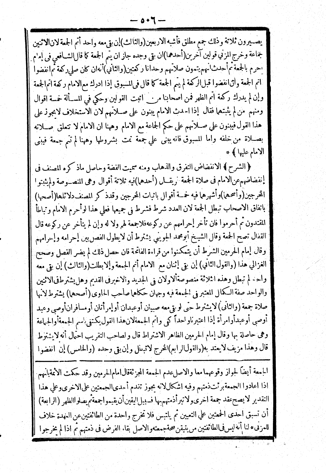 الجمعة أيضا لجواز وقوعهما معا والاصل عدم الجمعة المجزئة قال امام الحرمين وقد حكمت الائمة بانهم إذا اعادوا الجمعة برئت ذمتهم وفيه اشكال لانه يجوز تقدم أحدى الجمعتين على الاخرى وعلى هذا التقدير لا يصح عقد جمعة اخرى ولا تبرأ ذمتهم بها فسبيل اليقين أن يقيموا جمعة ثم يصلوا الظهر (الرابعة) أن تسبق احدى الجمعتين على التعيين ثم يلتبس فلا تخرج واحدة من الطائفتين عن العهدة خلاف للمزني * لنا أنه ليس في الطائفتين من يتيقن صحة جمعته والاصل بقاء الفرض في ذمتهم ثم إذا لم يخرجوا