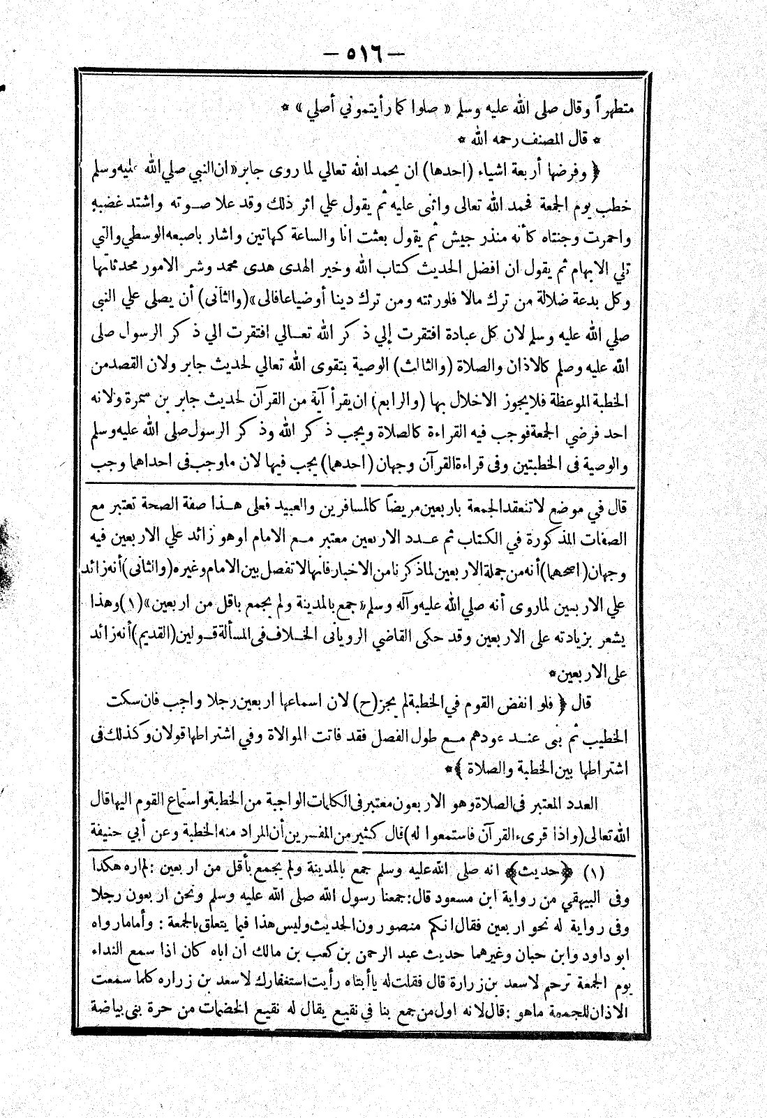 قال في موضع لا تنعقد الجمعة باربعين مريضا كالمسافرين والعبيد فعلى هذا صفة الصحة تعتبر مع الصفات المذكورة في الكتاب ثم عدد الاربعين معتبر مع الامام أو هو زائد علي الاربعين فيه وجهان (اصحهما) أنه من جملة الاربعين لما ذكرنا من الاخبار فانها لا تفصل بين الامام وغيره (والثانى) أنه زائد علي الاربعين لما روى أنه صلي الله عليه وسلم " جمع بالمدينة ولم يجمع باقل من اربعين " وهذا يشعر بزيادته على الاربعين وقد حكى القاضي الرويانى الخلاف في المسألة قولين (القديم) أنه زائد على الاربعين * قال (فلو انفض القوم في الخطبة لم يجز (ح) لان اسماعها اربعين رجلا واجب فان سكت الخطيب ثم بنى عند عودهم مع طول الفصل فقد فاتت الموالاة وفي اشتراطها قولان وكذلك في اشتراطها بين الخطبة والصلاة) * العدد المعتبر في الصلاة وهو الاربعون معتبر في الكلمات الواجبة من الخطبة واستماع القوم إليها قال الله تعالى (وإذا قرئ القرآن فاستمعوا له) قال كثير من المفسرين أن المراد منه الخطبة وعن أبي حنيفة