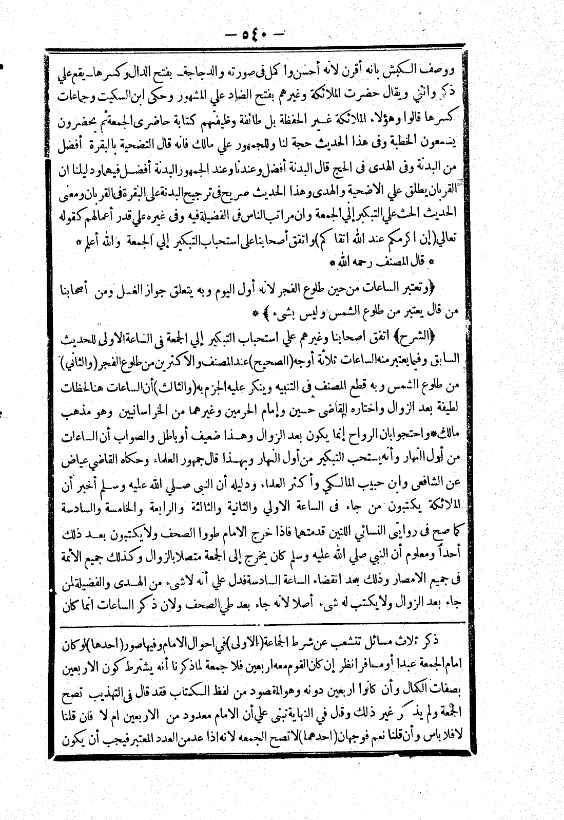 ذكر ثلاث مسائل تتشعب عن شرط الجماعة (الاولى) في احوال الامام وفيها صور (احدها) لو كان امام الجمعة عبدا أو مسافرا نظر إن كان القوم معه اربعين فلا جمعة لما ذكرنا أنه يشترط كون الاربعين بصفات الكمال وأن كانوا اربعين دونه وهو المقصود من لفظ الكتاب فقد قال في التهذيب تصح الجمعة ولم يذكر غير ذلك وقال في النهاية تبنى علي أن الامام معدود من الاربعين ام لا فان قلنا