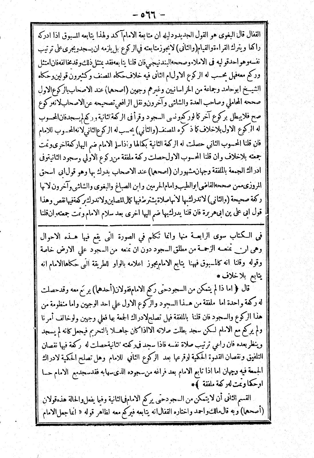 في الكتاب سوى الرابعة منها وانما تكلم في الصورة التى يقع فيها هذه الاحوال وهى ان تمنعه الزحمة من مطلق السجود دون ان تمنعه من السجود علي الارض خاصة وقوله وقلنا انه كالمسبوق فههنا يتابع الامام يجوز اعلامه بالواو للطريقة التى حكاها الامام انه يتابع بلا خلاف * قال (اما إذا لم يتمكن من السجود حتى ركع الامام فقولان (أحدهما) يركع معه وقد حصلت