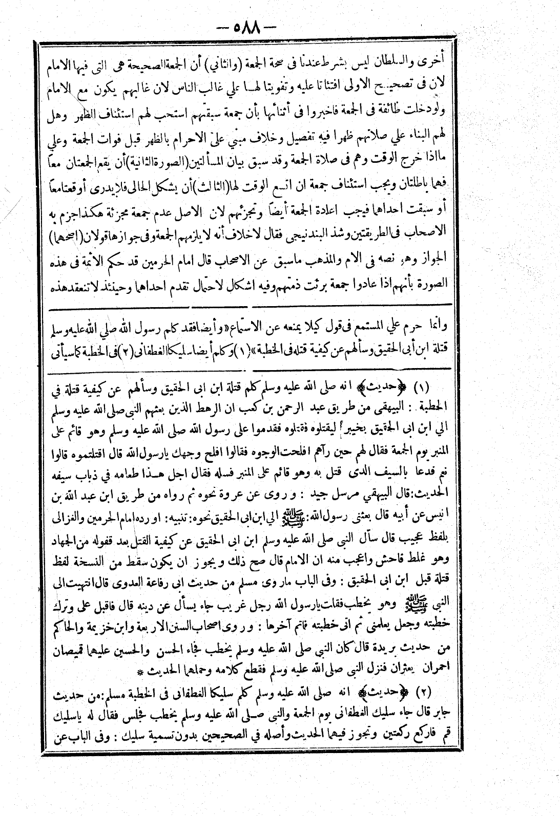 وانما حرم علي المستمع في قول كيلا يمنعه عن الاستماع " وأيضا فقد كلم رسول الله صلي الله عليه وسلم قتلة ابن أبى الحقيق وسالهم عن كيفية قتله في الخطبة " وكلم أيضا سليكا الغطفانى في الخطبة كما سيأتي