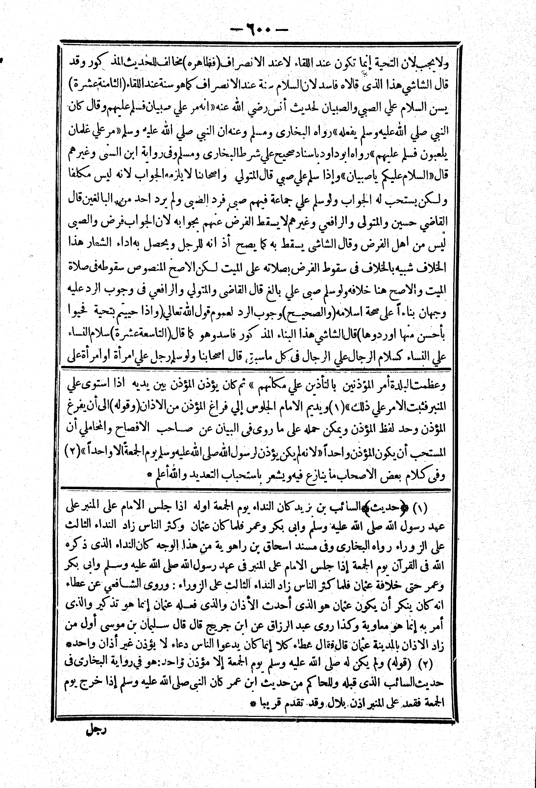 وعظمت البلدة أمر المؤذنين بالتأذين علي مكانهم " ثم كان يؤذن المؤذن بين يديه إذا استوى علي المنبر فثبت الامر علي ذلك " ويديم الامام الجلوس إلي فراغ المؤذن من الاذان (وقوله) إلى أن يفرغ المؤذن وحد لفظ المؤذن ويمكن حمله على ما روى في البيان عن صاحب الافصاح والمحاملي أن المستحب أن يكون المؤذن واحدا " لانه لم يكن يؤذن لرسول الله صلى الله عليه وسلم يوم الجمعة الا واحدا " وفى كلام بعض الاصحاب ما ينازع فيه ويشعر باستحباب التعديد والله أعلم *