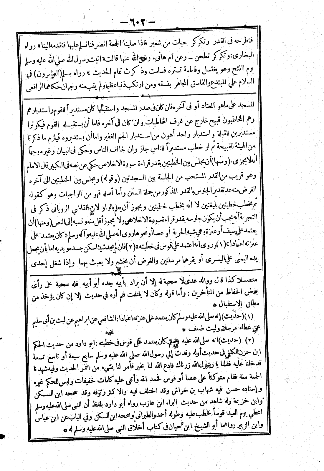 المسجد على ما هو المعتاد أو في آخره فان كان في صدر المسجد واستقبلها كان مستدبرا للقوم واستدبارهم وهم المخاطبون قبيح خارج عن غرف المخاطبات وان كان في آخره فاما أن يستقبله القوم فيكونوا مستدبرين للقبلة واستدبار واحد أهون من استدبار الجم الغفير واما أن يستدبروه فيلزم ما ذكرنا من الهيئة القبيحة ثم لو خطب مستدبرا للناس جاز وان خالف الناس وحكى في البيان وغيره وجها انه لا يجزئ (ومنها) أن يجلس بين الخطبتين بقدر قراءة سورة الاخلاص حكي عن نصه في الكبير قال الامام وهو قريب من القدر المستحب من الجلسة بين السجدتين (وقوله) ويجلس بين الخطبتين إلى آخره الغرض منه عد تقدير الجلوس بالقدر المذكور من جملة السنن وأما أصله فهو من الواجبات وهو كقوله ثم يخطب خطبتين بليغتين لا انه يخطب خطبتين ويجوز أن يعلم بالواو لان القاضي الرويانى ذكر في التجربة أنه يجب أن يكون جلوسه بقدر قراءة سورة الاخلاص ولا يجوز أقل منه ونسبه إلى النص (ومنها) أن يعتمد على سيف أو عنزة وهي شبه الحربة أو عصا أو نحوها روى انه صلي الله عليه وسلم " كان يعتمد على عنزته اعتمادا " وروى انه اعتمد علي قوس في خطبته " فان لم يجد شيئا سكن جسده ويديه اما بأن يجعل يده اليمنى علي اليسرى أو يقرهما مرسلتين والغرض أن يخشع ولا يعبث بهما وإذا شغل إحدى