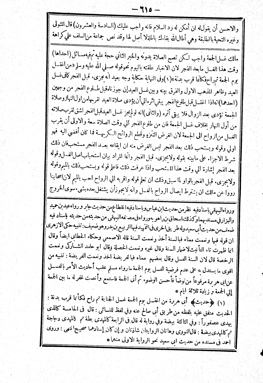 مالك غسل الجمعة واجب لكن تصح الصلاة بدونه والخبر الثاني حجة عليه ثم فيه مسائل (احداها)