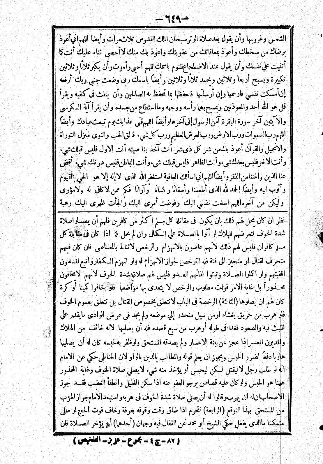 نظر ان كان يحل لهم ذلك بان يكون في مقاتلة كل مسلم اكثر من كافرين فلهم أن يصلوا صلاة شدة الخوف لتعرضهم للهلاك لو أتوا بالصلاة علي الكمال وان لم يحل كما إذا كان في مقابلة كل مسلم كافران فليس لهم ذلك لانهم عاصون بالانهزام والرخص لا تناط بالمعاصى فان كان فيهم متحرف لقتال أو متحيز إلى فئة فله الترخص لجواز الانهزام له ولو انهزم الكفار واتبع المسلمون اقفيتهم ولو اكملوا الصلاة وثبتوا لفاتهم العدو فليس لهم صلاة شدة الخوف لانهم لا يخافون محذورا بل غاية الامر فوات مطلوب والرخص لا يتعدى بها مواضعها فلو خافوا كمينا أو كرة كان لهم ان يصلوها (الثالثة) الرخصة في الباب لا تتعلق بخصوص القتال بل تتعلق بعموم الخوف فلو هرب من حريق يغشاه أو من سيل منحدر إلي موضعه ولم يجد في عرض الوادي ما يقدر علي اللبث فيه والصعود فغدا في طوله أو هرب من سبع قصده فله أن يصليها لانه خائف من الهلاك والمديون المعسر إذا عجز عن بينة الاعسار ولم يصدقه المستحق ولو ظفر به لحبسه كان له أن يصليها هاربا دفعا لضرر الحبس ويجوز ان يعلم قوله والمطالب بالدين بالواو لان الحناطى حكي عن الامام انه لو طلب رجل لا ليقتل لكن ليحبس أو يؤخذ منه شئ لا يصلي صلاة الخوف وغاية المحذور ههنا هو الحبس ولو كان عليه قصاص يرجو العفو عنه إذا سكن الغليل وانطفأ الغضب فقد جوز الاصحاب ان له ان يهرب وقالوا له أن يصلي صلاة شدة الخوف في هربه واستبعد الامام جواز الهرب من المستحق بهذا التوقع (الرابعة) المحرم إذا ضاق وقت وقوفه بعرفة وخاف فوت الحج لو صلى متمكنا ما الذى يفعل حكي الشيخ أبو محمد عن القفال فيه وجهان (أحدهما) أنه يؤخر الصلاة فان