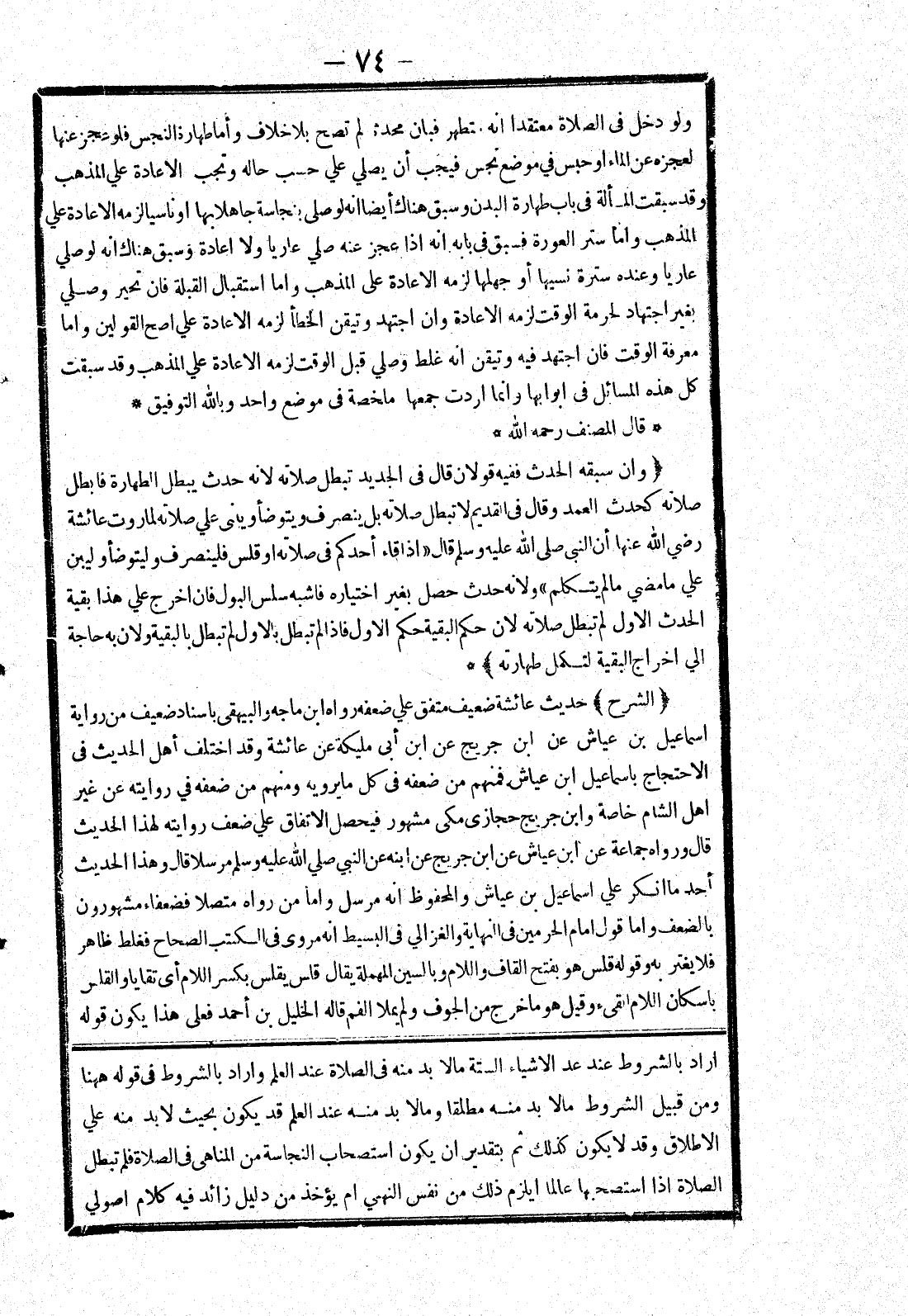 اراد بالشروط عند عد الاشياء الستة ما لا بد منه في الصلاة عند العلم واراد بالشروط في قوله ههنا