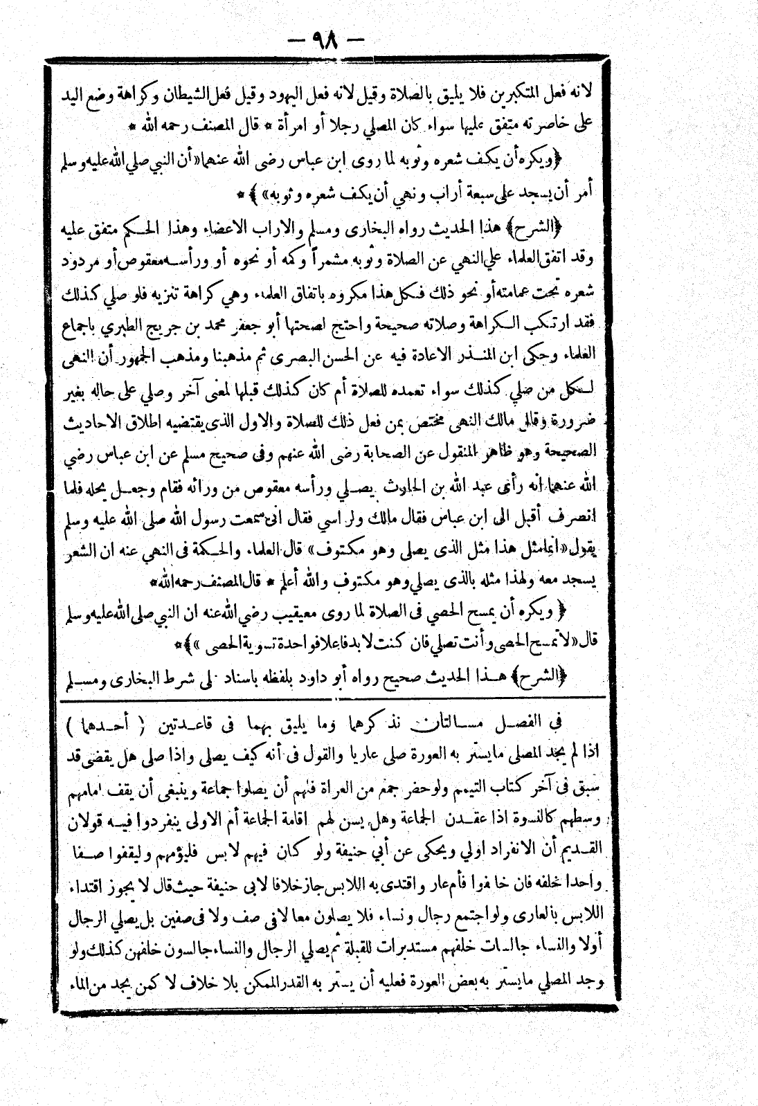 اللابس بالعارى ولو اجتمع رجال ونساء فلا يصلون معا لا في صف ولا في صفين بل يصلي الرجال أولا والنساء جالسات خلفهم مستدبرات للقبلة ثم يصلي الرجال والنساء جالسون خلفهن كذلك ولو وجد المصلي ما يستر به بعض العورة فعليه أن يستر به القدر الممكن بلا خلاف لا كمن يجد من الماء