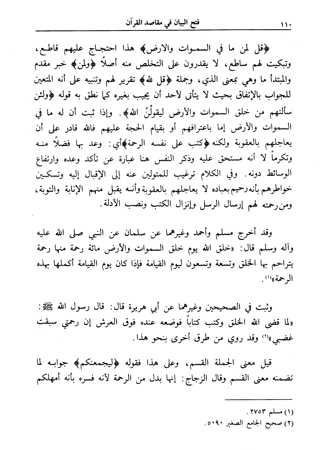 وثبت في الصحيحين وغيرهما عن أبي هريرة قال: قال رسول الله - صلى الله عليه وسلم -: