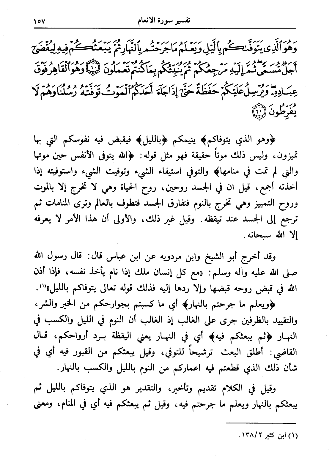 وَهُوَ الَّذِي يَتَوَفَّاكُمْ بِاللَّيْلِ وَيَعْلَمُ مَا جَرَحْتُمْ بِالنَّهَارِ ثُمَّ يَبْعَثُكُمْ فِيهِ لِيُقْضَى أَجَلٌ مُسَمًّى ثُمَّ إِلَيْهِ مَرْجِعُكُمْ ثُمَّ يُنَبِّئُكُمْ بِمَا كُنْتُمْ تَعْمَلُونَ (60) وَهُوَ الْقَاهِرُ فَوْقَ عِبَادِهِ وَيُرْسِلُ عَلَيْكُمْ حَفَظَةً حَتَّى إِذَا جَاءَ أَحَدَكُمُ الْمَوْتُ تَوَفَّتْهُ رُسُلُنَا وَهُمْ لَا يُفَرِّطُونَ (61)