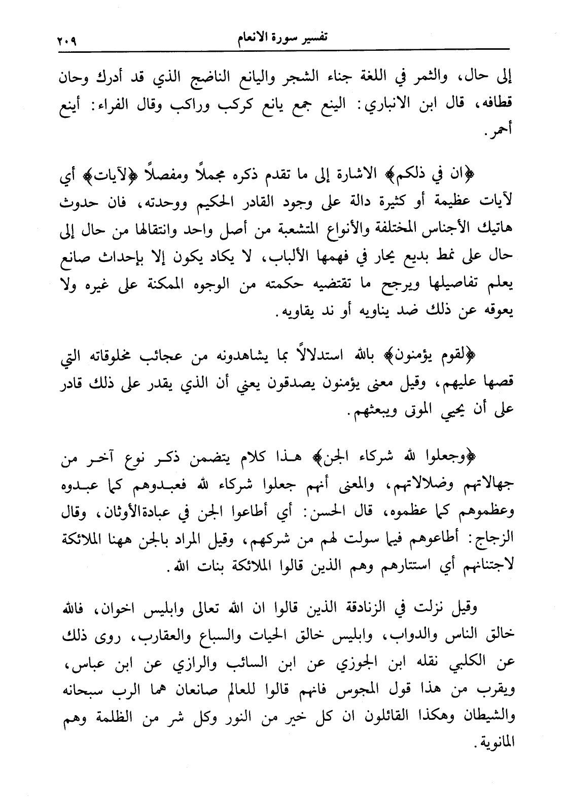 وقيل نزلت في الزنادقة الذين قالوا أن الله تعالى وإبليس إخوان، فالله خالق الناس والدواب، وإبليس خالق الحيات والسباع والعقارب، روى ذلك عن الكلبي نقله ابن الجوزي عن ابن السائب والرازي عن ابن عباس، ويقرب من هذا قول المجوس فإنهم قالوا للعالم صانعان هما الرب سبحانه والشيطان وهكذا القائلون إن كل خير من النور وكل شر من الظلمة وهم المانوية.