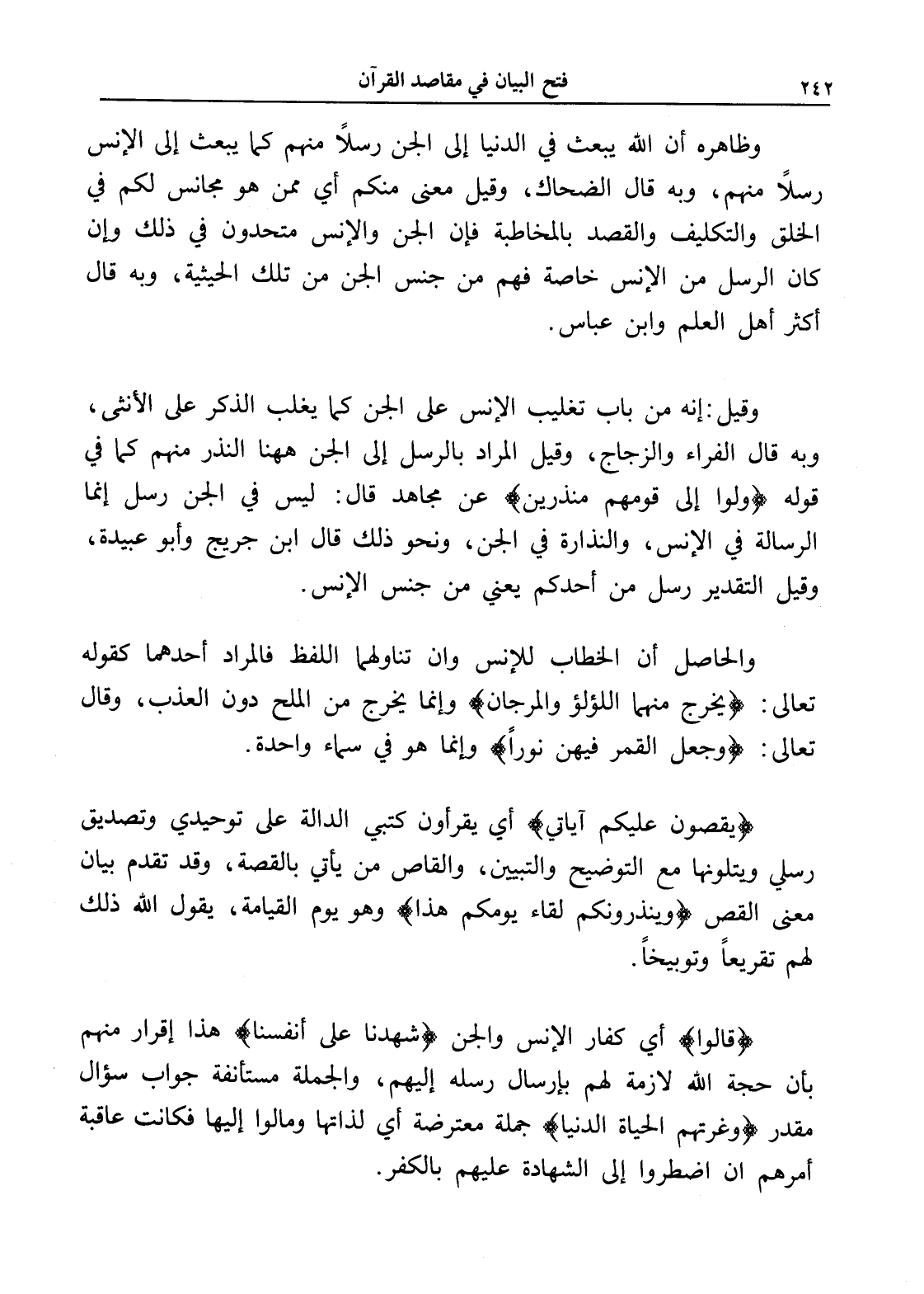 والحاصل أن الخطاب للإنس وإن تناولهما اللفظ فالمراد أحدهما كقوله تعالى: (يخرج منهما اللؤلؤ والمرجان) وإنما يخرج من الملح دون العذب، وقال تعالى: (وجعل القمر فيهن نوراً) وإنما هو في سماء واحدة.