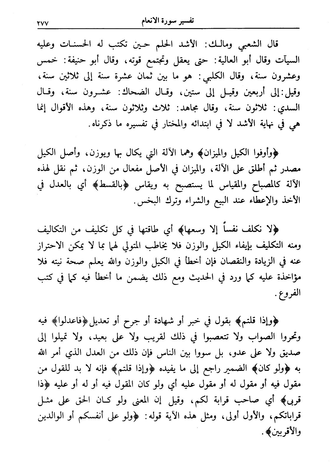(وأوفوا الكيل والميزان) وهما الآلة التي يكال بها ويوزن، وأصل الكيل مصدر ثم أطلق على الآلة، والميزان في الأصل مفعال من الوزن، ثم نقل لهذه الآلة كالمصباح والمقياس لما يستصبح به ويقاس (بالقسط) أي بالعدل في الأخذ والإعطاء عند البيع والشراء وترك البخس.
