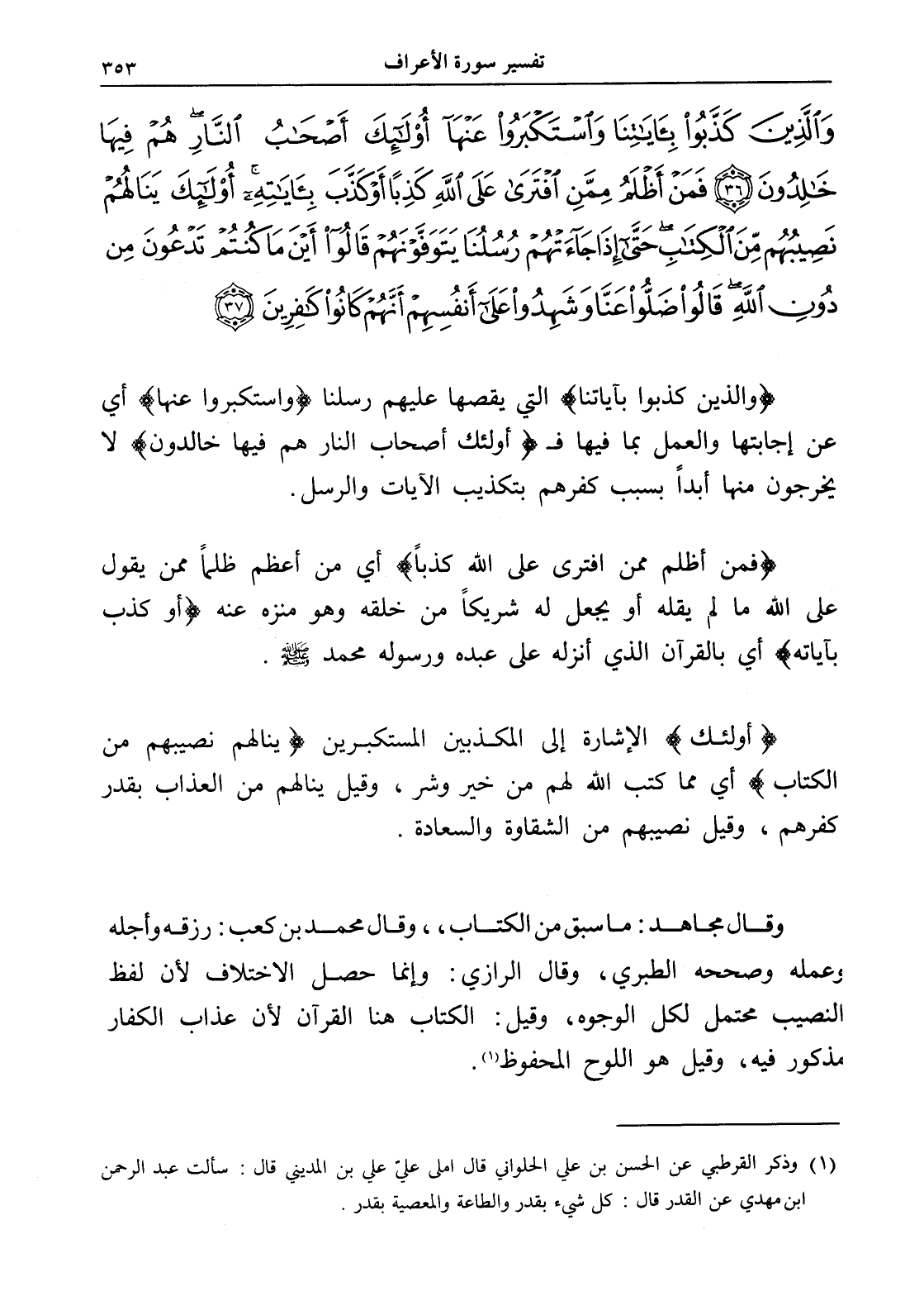 وَالَّذِينَ كَذَّبُوا بِآيَاتِنَا وَاسْتَكْبَرُوا عَنْهَا أُولَئِكَ أَصْحَابُ النَّارِ هُمْ فِيهَا خَالِدُونَ (36) فَمَنْ أَظْلَمُ مِمَّنِ افْتَرَى عَلَى اللَّهِ كَذِبًا أَوْ كَذَّبَ بِآيَاتِهِ أُولَئِكَ يَنَالُهُمْ نَصِيبُهُمْ مِنَ الْكِتَابِ حَتَّى إِذَا جَاءَتْهُمْ رُسُلُنَا يَتَوَفَّوْنَهُمْ قَالُوا أَيْنَ مَا كُنْتُمْ تَدْعُونَ مِنْ دُونِ اللَّهِ قَالُوا ضَلُّوا عَنَّا وَشَهِدُوا عَلَى أَنْفُسِهِمْ أَنَّهُمْ كَانُوا كَافِرِينَ (37)