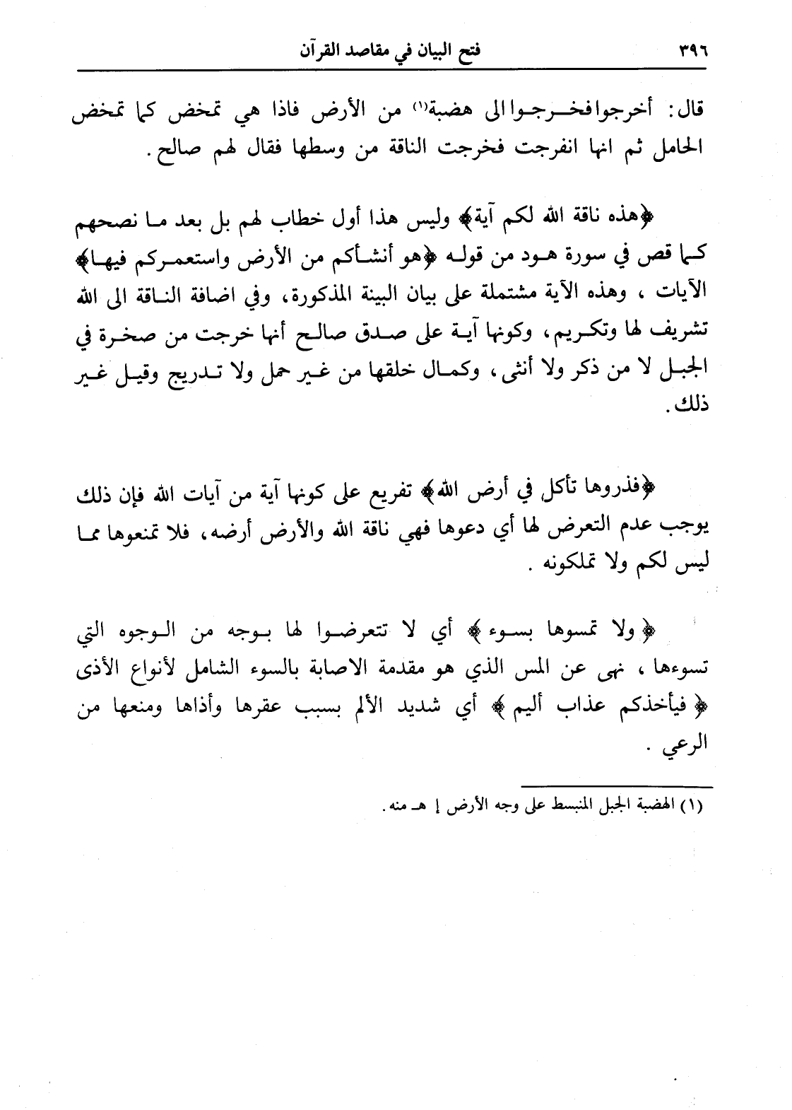 (ولا تمسوها بسوء) أي لا تتعرضوا لها بوجه من الوجوه التي تسوءها، نهى عن المس الذي هو مقدمة الإصابة بالسوء الشامل لأنواع الأذى (فيأخذكم عذاب أليم) أي شديد الألم بسبب عقرها وأذاها ومنعها من الرعي.