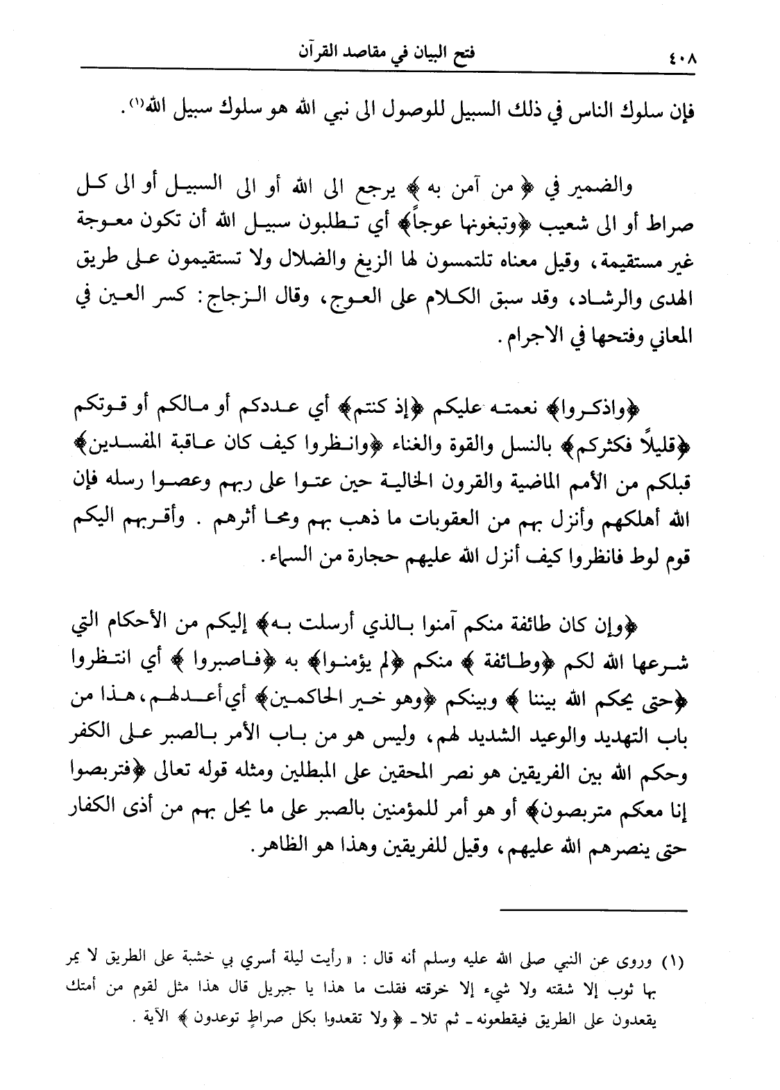 (¬1) وروى عن النبي صلى الله عليه وسلم أنه قال: " رأيت ليلة أسري بي خشبة على الطريق لا يمر بها ثوب إلا شقته ولا شيء إلا خرقته فقلت ما هذا يا جبريل قال هذا مثل لقوم من أمتك يقعدون على الطريق فيقطعونه -ثم تلا- " (ولا تقعدوا بكل صراطٍ توعدون) الآية.