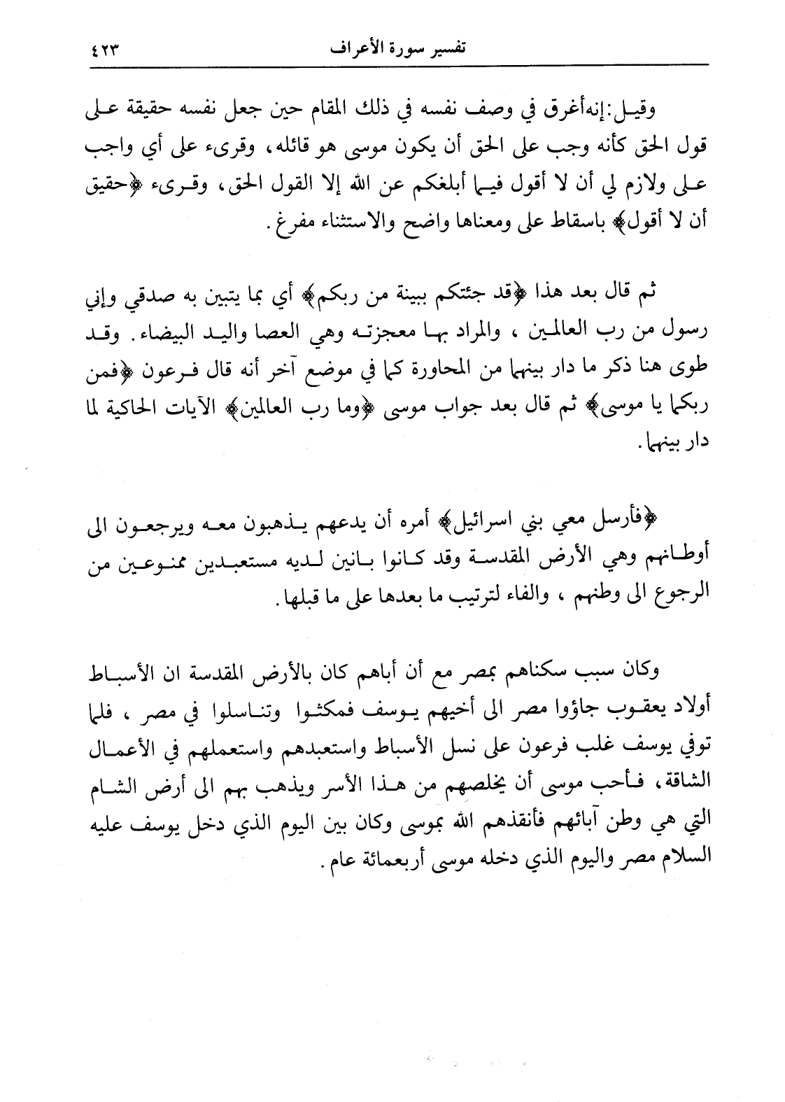 ثم قال بعد هذا (قد جئتكم ببينة من ربكم) أي بما يتبين به صدقي وإني رسول من رب العالمين، والمراد بها معجزته وهي العصا واليد البيضاء. وقد طوى هنا ذكر ما دار بينهما من المحاورة كما في موضع آخر أنه قال فرعون (فمن ربكما يا موسى) ثم قال بعد جواب موسى (وما رب العالمين) الآيات الحاكية لما دار بينهما.