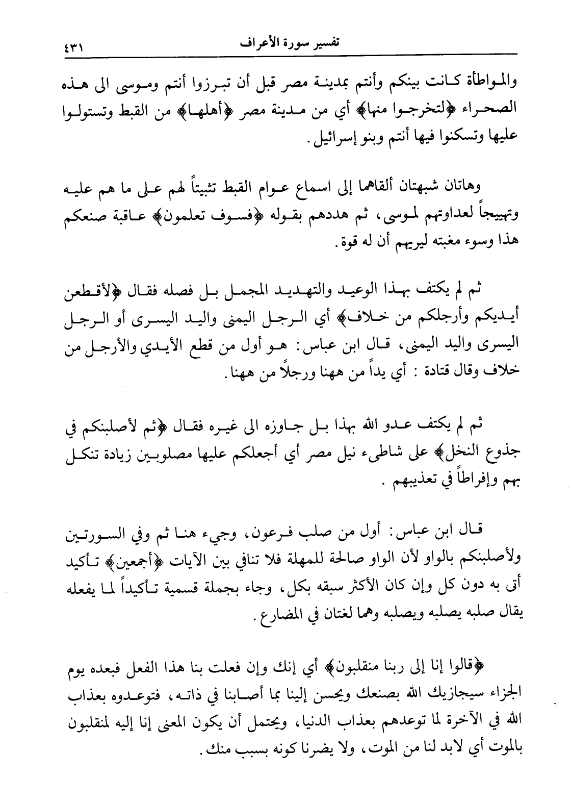 (لأقطعن أيديكم وأرجلكم من خلاف) أي الرجل اليمنى واليد اليسرى أو الرجل اليسرى واليد اليمنى، قال ابن عباس: هو أول من قطع الأيدي والأرجل من خلاف وقال قتادة: أي يداً من ههنا ورجلاً من ههنا.