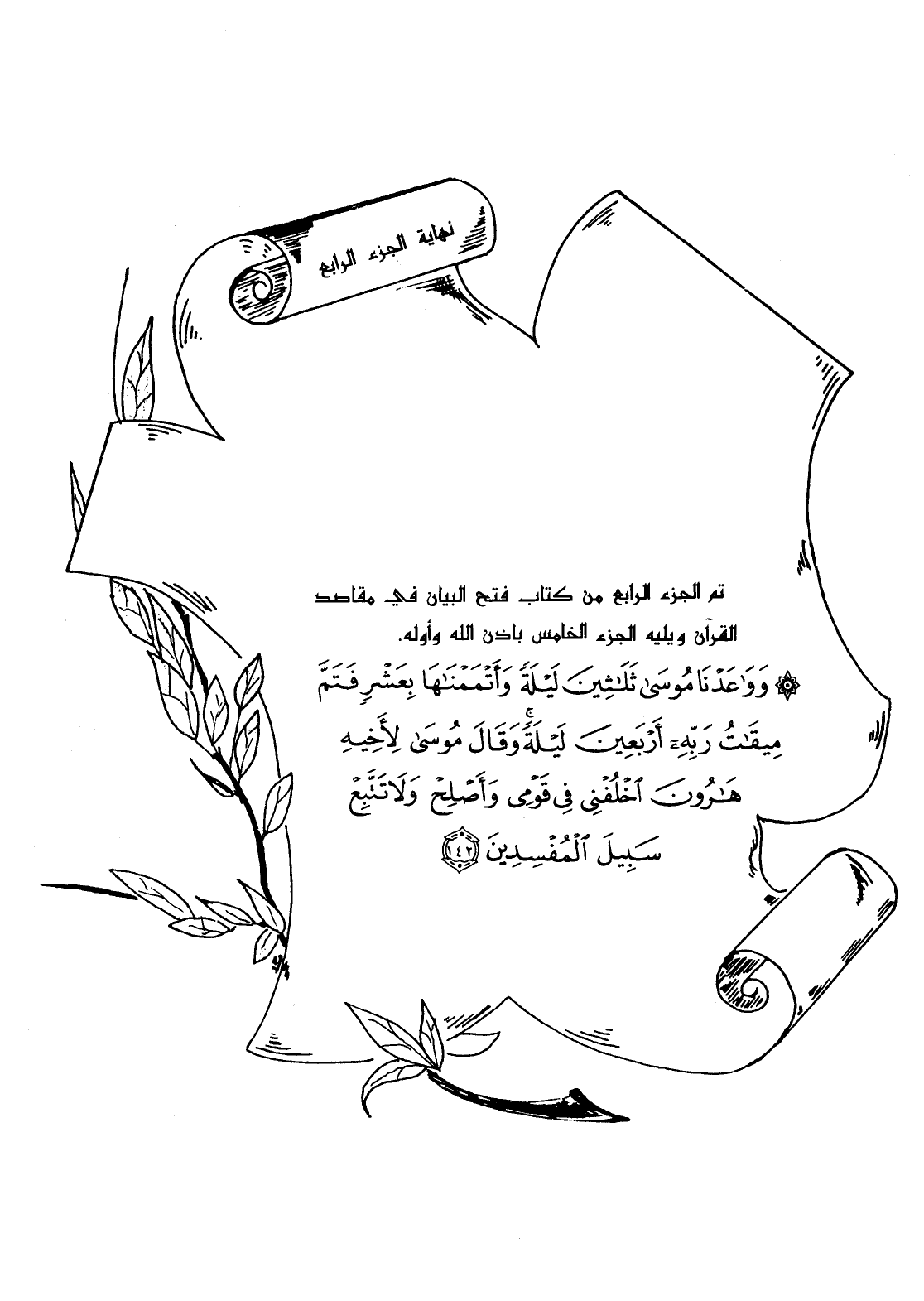 تم الجزء الرابع من كتاب فتح البيان في مقاصد القرآن ويليه الجزء الخامس بأذن الله وأوله:
