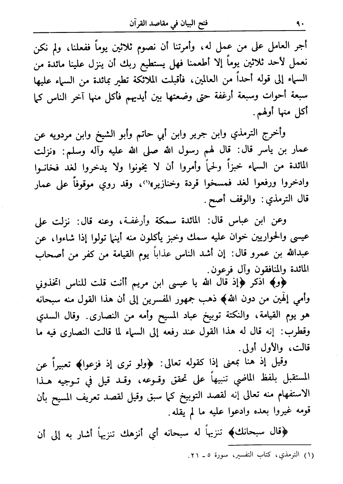 (¬1) الترمذي، كتاب التفسير، سورة 5 - 21.