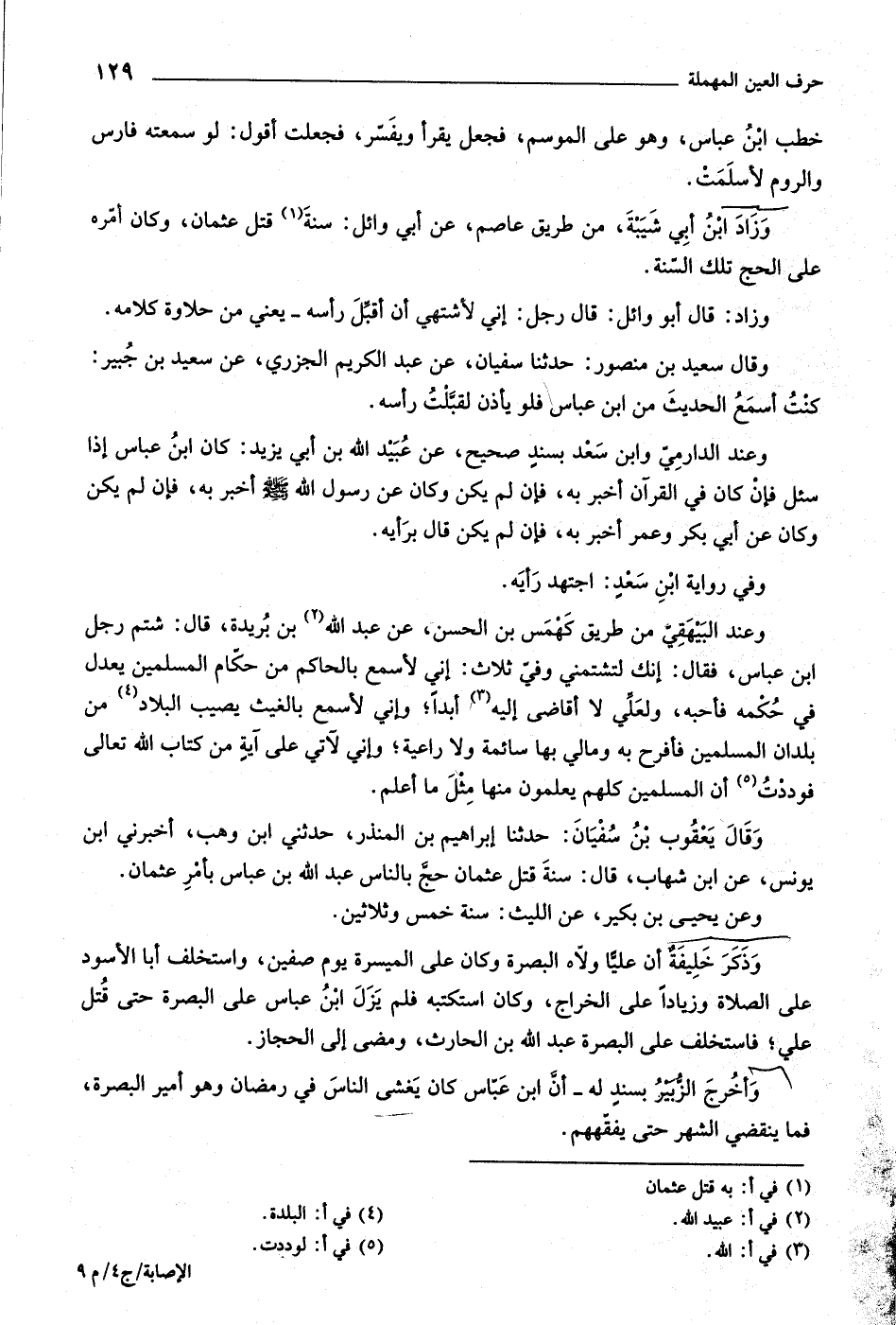 وزاد ابن أبي شيبة، من طريق عاصم، عن أبي وائل: سنة «١» قتل عثمان، وكان أمّره على الحج تلك السّنة.