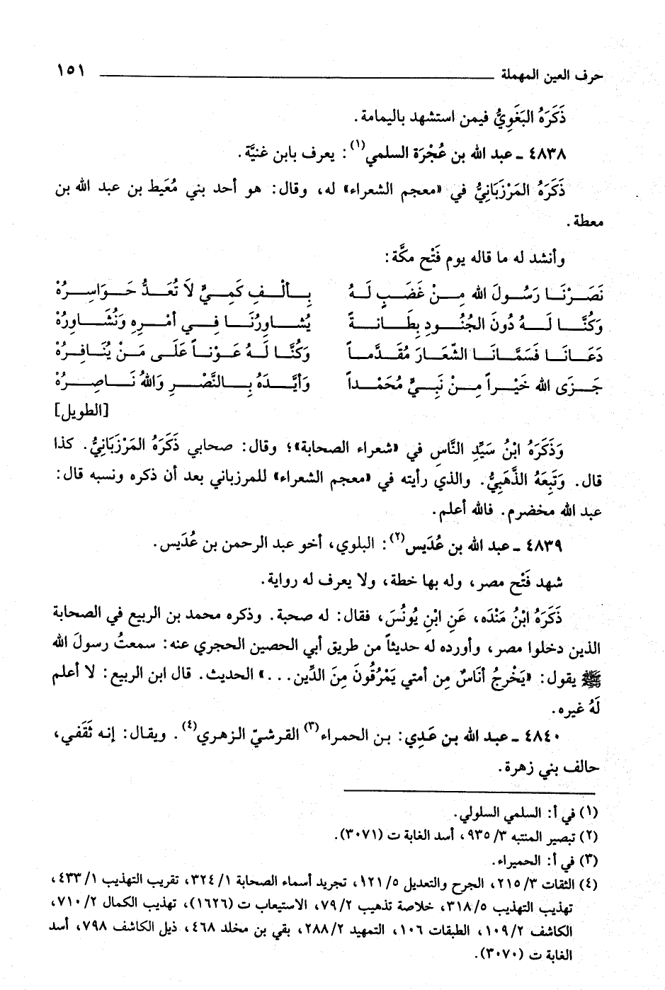 [الطويل] وذكره ابن سيّد النّاس في «شعراء الصحابة» ، وقال: صحابي ذكره المرزبانيّ. كذا قال. وتبعه الذّهبيّ. والّذي رأيته في «معجم الشعراء» للمرزباني بعد أن ذكره ونسبه قال: