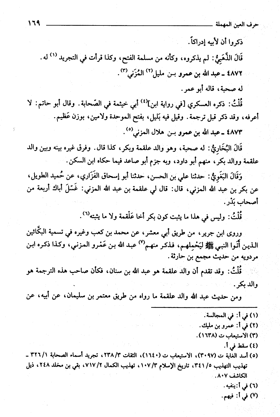 (٥) أسد الغابة ت (٣٠٩٧) ، الاستيعاب ت (١٦٤٠) ، الثقات ٣/ ٢٣٨، تجريد أسماء الصحابة ١/ ٣٢٦- تهذيب التهذيب ٥/ ٣٤١، تاريخ الإسلام ٣/ ١٠٧، تهذيب الكمال ٢/ ٧١٧، بقي بن مخلد ٢٤٨، ذيل الكاشف ٨٠٧.