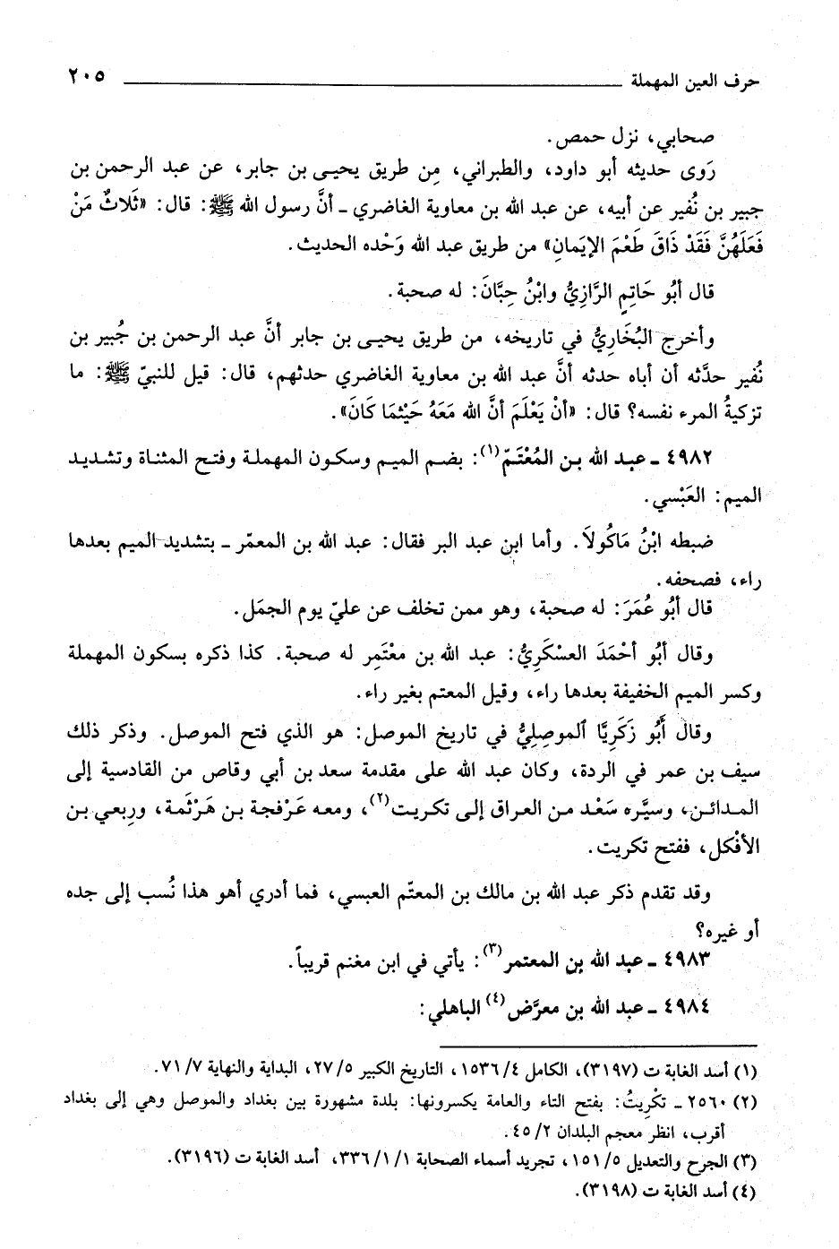 ضبطه ابن ماكولا. وأما ابن عبد البر فقال: عبد اللَّه بن المعمّر- بتشديد الميم بعدها راء، فصحفه.