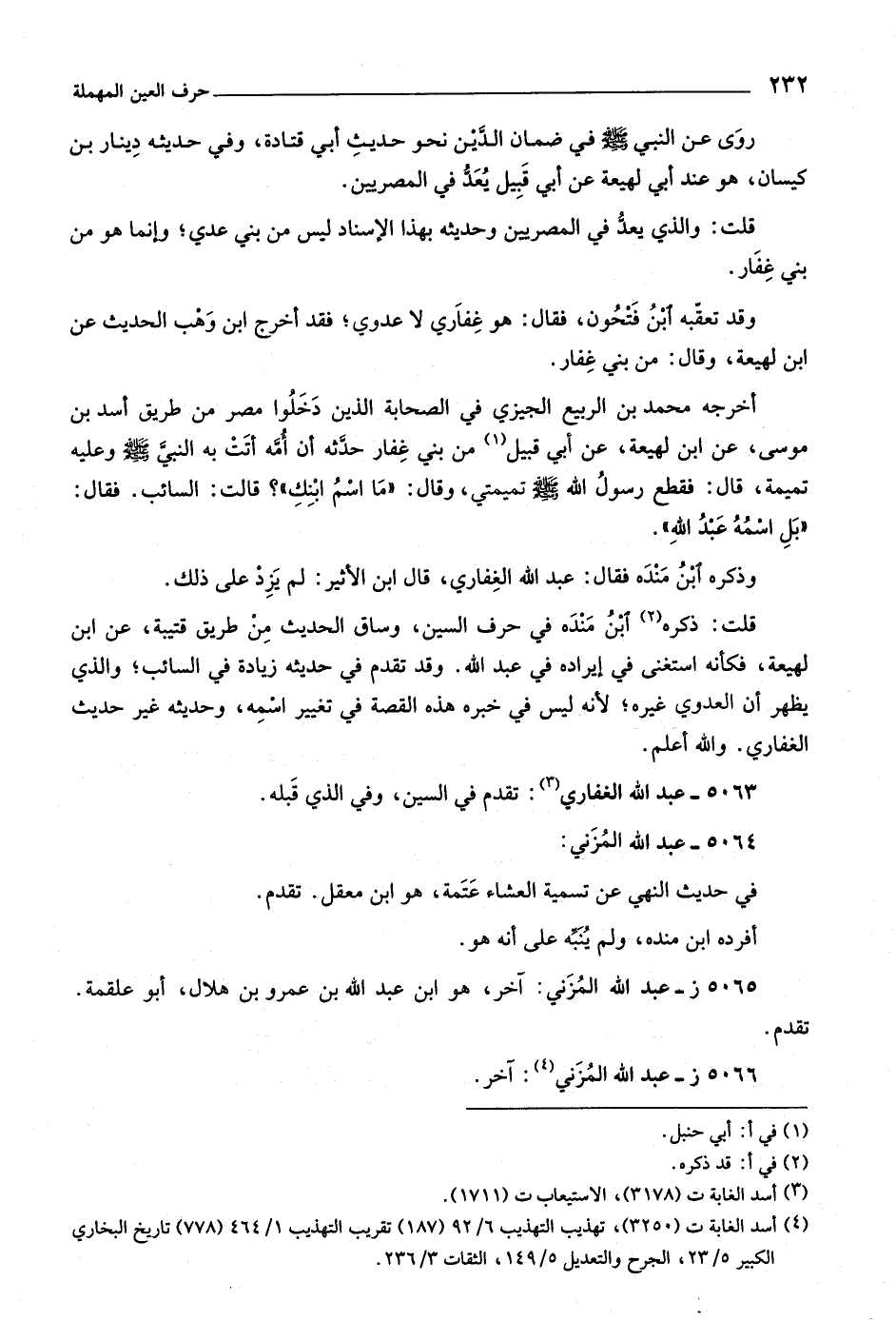 قلت: والّذي يعدّ في المصريين وحديثه بهذا الإسناد ليس من بني عدي، وإنما هو من بني غفار.