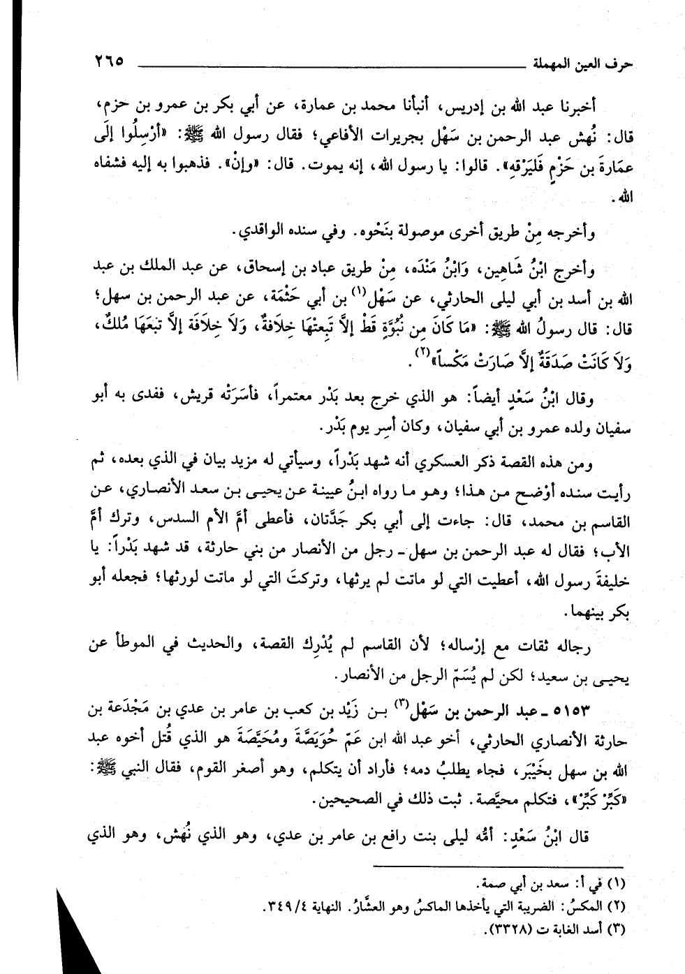 ومحيّصة هو الّذي قتل أخوه عبد اللَّه بن سهل بخيبر، فجاء يطلب دمه، فأراد أن يتكلم، وهو أصغر القوم، فقال النبيّ صلى اللَّه عليه وسلّم: «كبّر كبّر» ، فتكلم محيّصة. ثبت ذلك في الصحيحين.