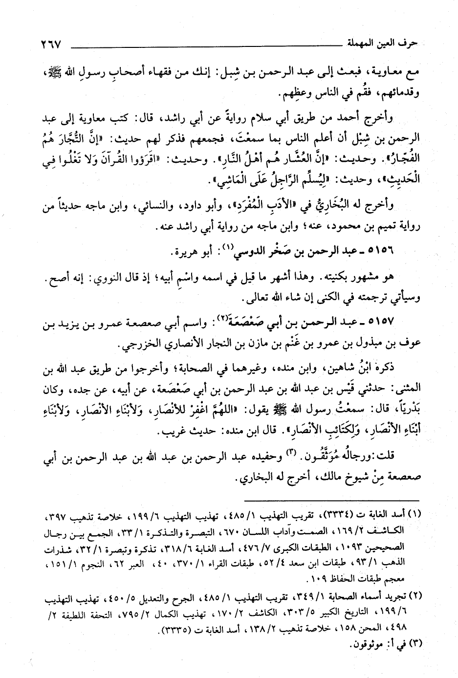 (١) أسد الغابة ت (٣٣٣٤) ، تقريب التهذيب ١/ ٤٨٥، تهذيب التهذيب ٦/ ١٩٩، خلاصة تذهيب ٣٩٧، الكاشف ٢/ ١٦٩، الصمت وآداب اللسان ٦٧٠، التبصرة والتذكرة ١/ ٣٣، الجمع بين رجال الصحيحين ١٠٩٣، الطبقات الكبرى ٧/ ٤٧٦، أسد الغابة ٦/ ٣١٨، تذكرة وتبصرة ١/ ٣٢، شذرات الذهب ١/ ٩٣، طبقات ابن سعد ٤/ ٥٢، طبقات القراء ١/ ٣٧٠، ٤٠، العبر ٦٢، النجوم ١/ ١٥١، معجم طبقات الحفاظ ١٠٩.