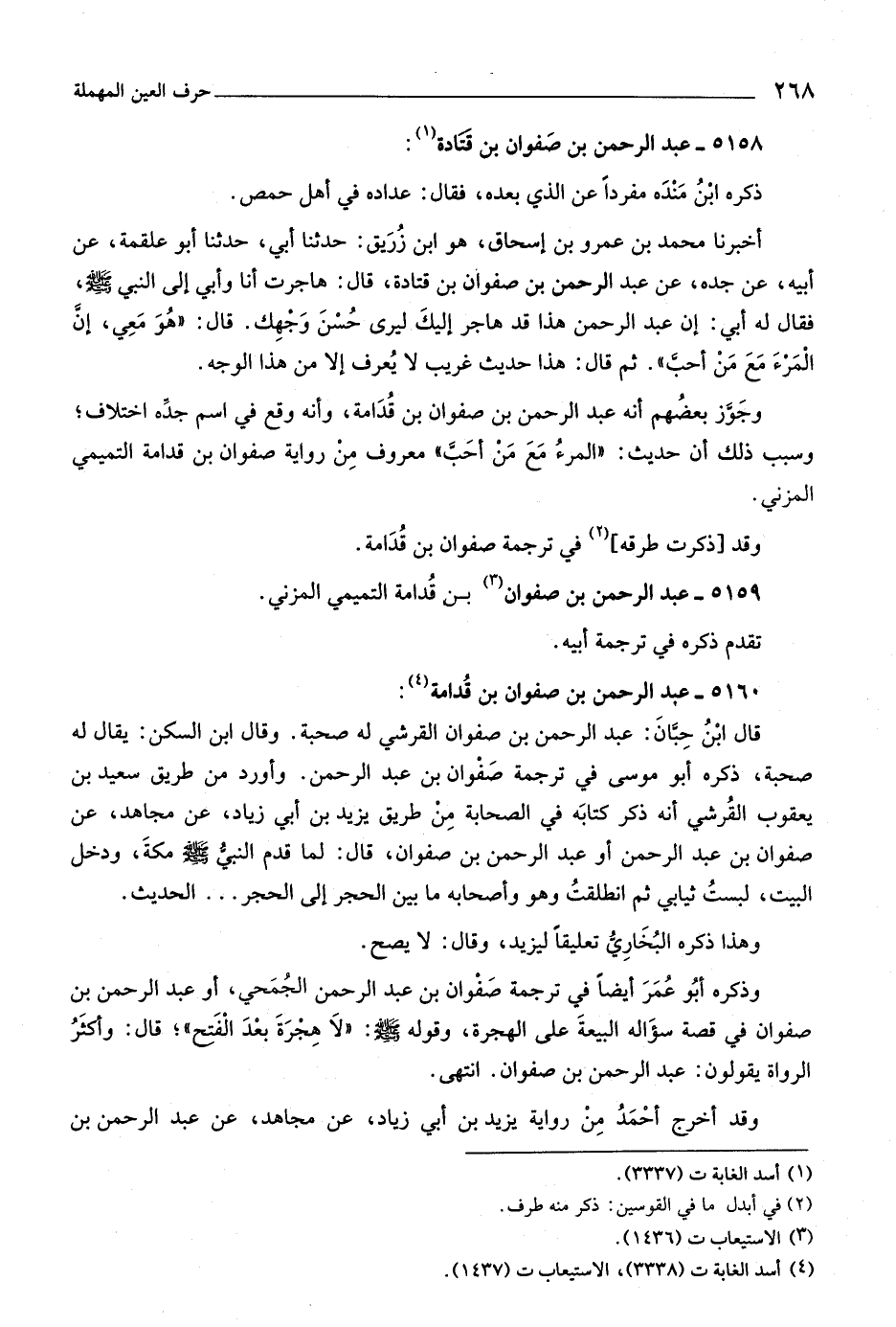 ٥١٦٠- عبد الرحمن بن صفوان بن قدامة «٤» :