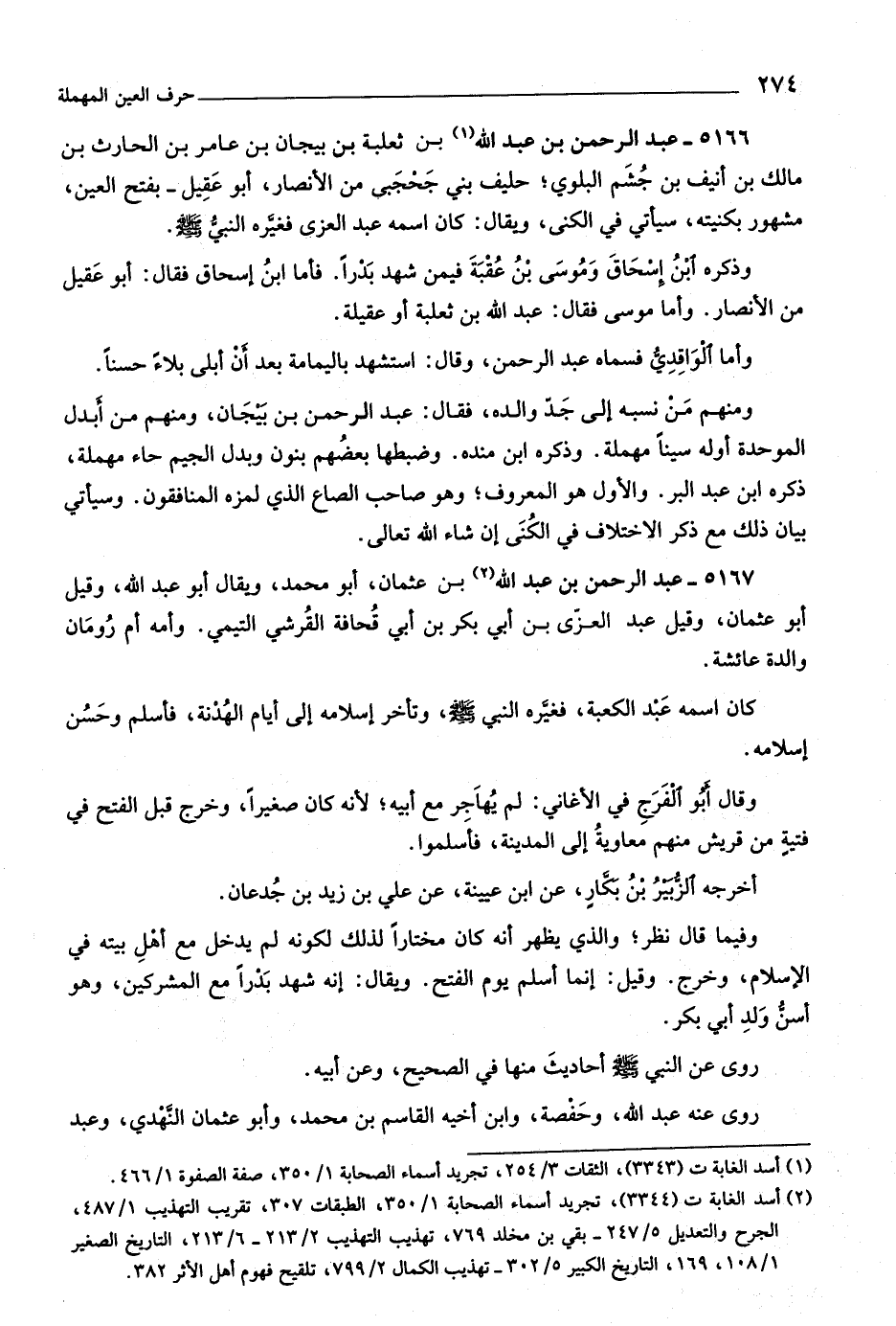(٢) أسد الغابة ت (٣٣٤٤) ، تجريد أسماء الصحابة ١/ ٣٥٠، الطبقات ٣٠٧، تقريب التهذيب ١/ ٤٨٧، الجرح والتعديل ٥/ ٢٤٧- بقي بن مخلد ٧٦٩، تهذيب التهذيب ٢/ ٢١٣- ٦/ ٢١٣، التاريخ الصغير ١/ ١٠٨، ١٦٩، التاريخ الكبير ٥/ ٣٠٢- تهذيب الكمال ٢/ ٧٩٩، تلقيح فهوم أهل الأثر ٣٨٢.