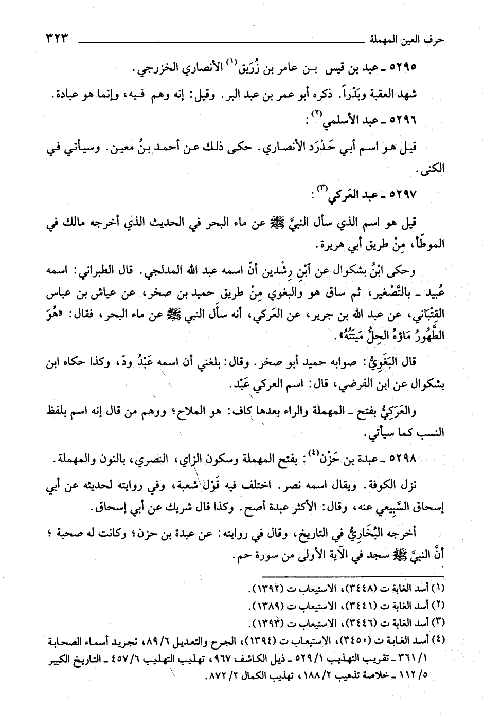 (٤) أسد الغابة ت (٣٤٥٠) ، الاستيعاب ت (١٣٩٤) ، الجرح والتعديل ٦/ ٨٩، تجريد أسماء الصحابة ١/ ٣٦١- تقريب التهذيب ١/ ٥٢٩- ذيل الكاشف ٩٦٧، تهذيب التهذيب ٦/ ٤٥٧- التاريخ الكبير ٥/ ١١٢- خلاصة تذهيب ٢/ ١٨٨، تهذيب الكمال ٢/ ٨٧٢.
