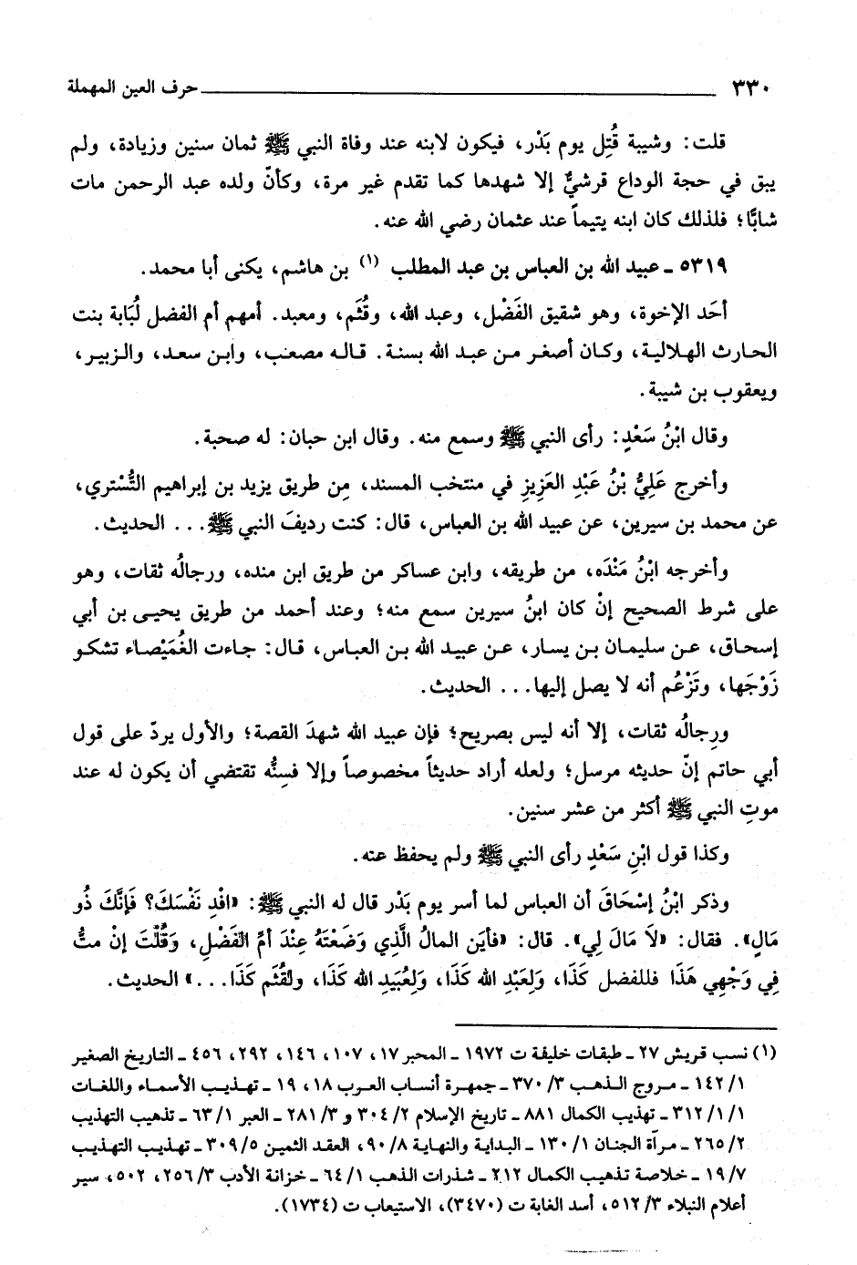 أحد الإخوة، وهو شقيق الفضل، وعبد اللَّه، وقثم، ومعبد. أمهم أم الفضل لبابة بنت الحارث الهلالية، وكان أصغر من عبد اللَّه بسنة. قاله مصعب، وابن سعد، والزبير، ويعقوب بن شيبة.