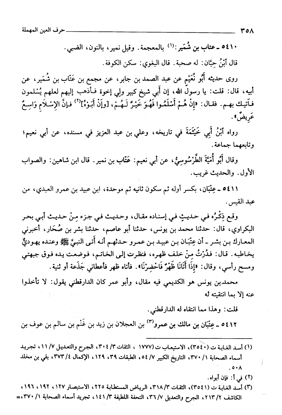 وقال أبو أميّة الطّرسوسيّ، عن أبي نعيم: عتّاب بن نمير. قال ابن شاهين: والصواب الأول. والحديث غريب.