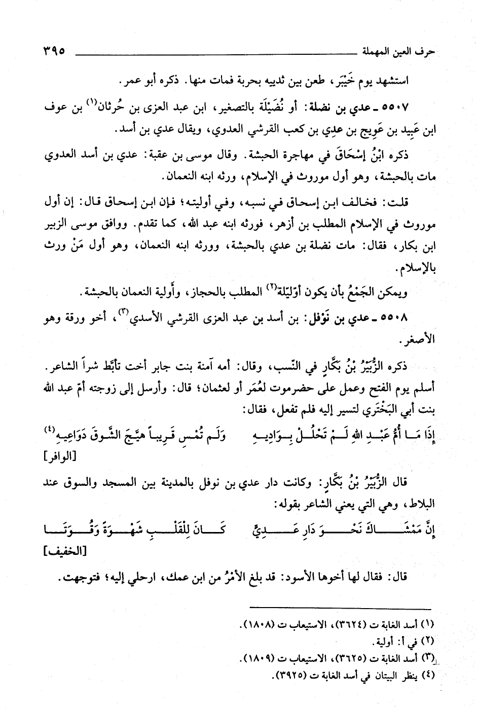 قلت: فخالف ابن إسحاق في نسبه، وفي أوليته، فإن ابن إسحاق قال: إن أول موروث في الإسلام المطلب بن أزهر، فورثه ابنه عبد اللَّه، كما تقدم. ووافق موسى الزبير ابن بكار، فقال: مات نضلة بن عدي بالحبشة، وورثه ابنه النعمان، وهو أول من ورث بالإسلام.