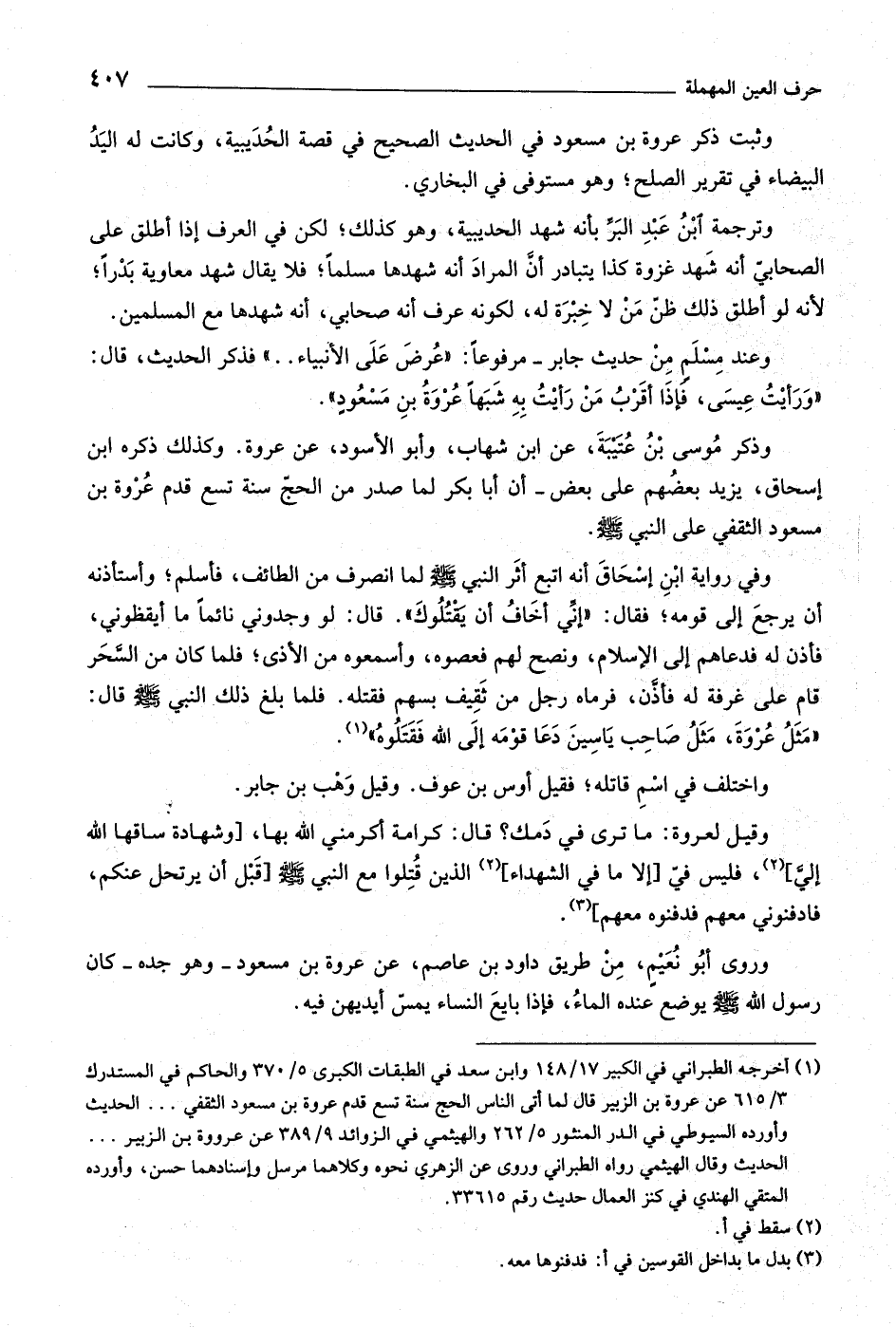 (١) أخرجه الطبراني في الكبير ١٧/ ١٤٨ وابن سعد في الطبقات الكبرى ٥/ ٣٧٠ والحاكم في المستدرك ٣/ ٦١٥ عن عروة بن الزبير قال لما أتى الناس الحج سنة تسع قدم عروة بن مسعود الثقفي ... الحديث وأورده السيوطي في الدر المنثور ٥/ ٢٦٢ والهيثمي في الزوائد ٩/ ٣٨٩ عن عروة بن الزبير ... الحديث وقال الهيثمي رواه الطبراني وروى عن الزهري نحوه وكلاهما مرسل وإسنادهما حسن، وأورده المتقي الهندي في كنز العمال حديث رقم ٣٣٦١٥.