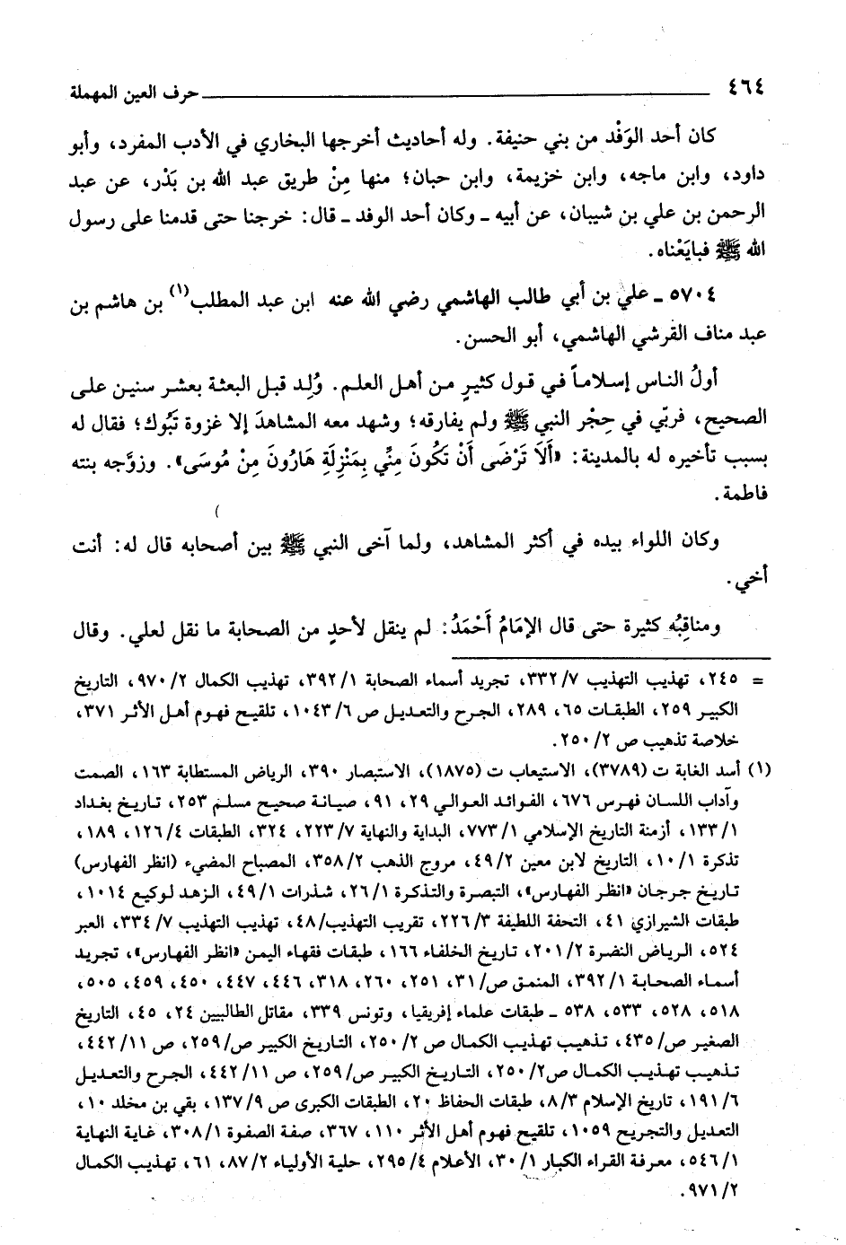 ٥٧٠٤- علي بن أبي طالب الهاشمي رضي اللَّه عنه
