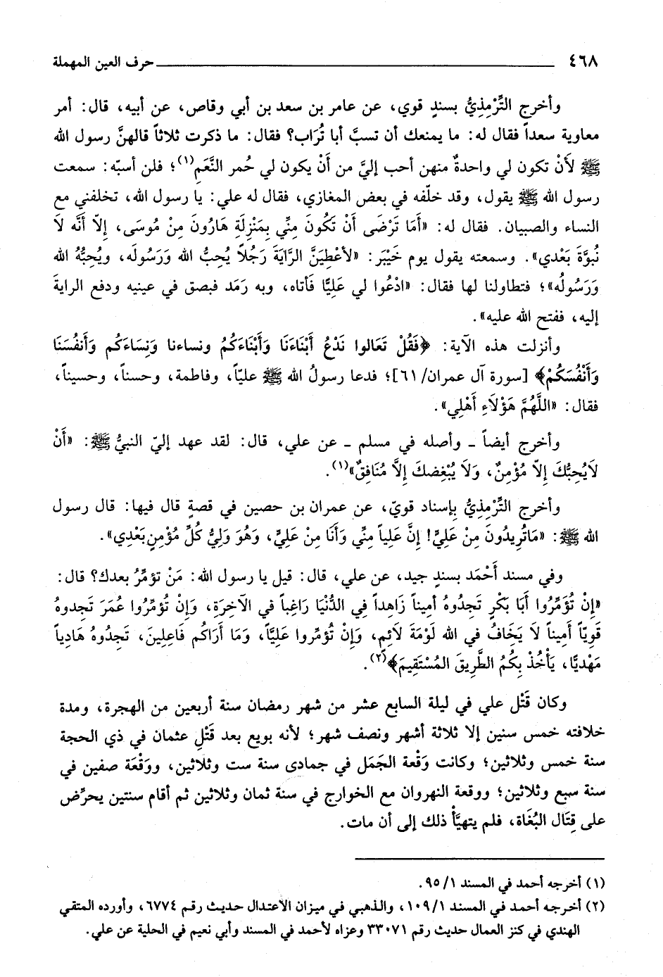 (٣) أخرجه أحمد في المسند ١/ ١٠٩، والذهبي في ميزان الاعتدال حديث رقم ٦٧٧٤، وأورده المتقي الهندي في كنز العمال حديث رقم ٣٣٠٧١ وعزاه لأحمد في المسند وأبي نعيم في الحلية عن علي.