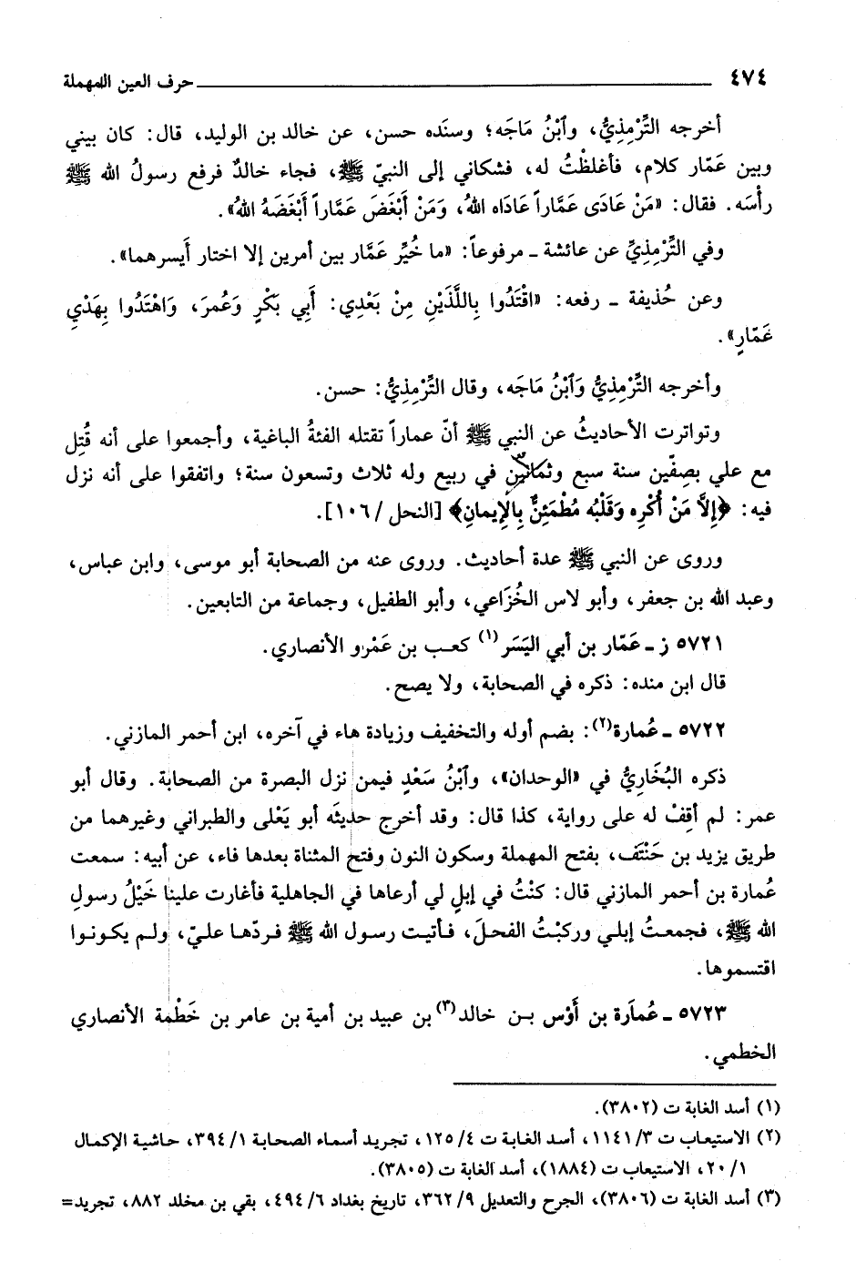 (٢) الاستيعاب ت ٣/ ١١٤١، أسد الغابة ت ٤/ ١٢٥، تجريد أسماء الصحابة ١/ ٣٩٤، حاشية الإكمال ١/ ٢٠، الاستيعاب ت (١٨٨٤) ، أسد الغابة ت (٣٨٠٥) .