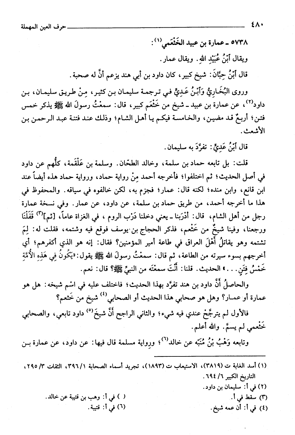 والحاصل أنّ داود بن هند تفرّد بهذا الحديث، فاختلف عليه في اسم شيخه: هل هو عمارة أو عمار؟ وهل هو صحابي هذا الحديث أو الصحابي «٤» شيخ من خثعم؟