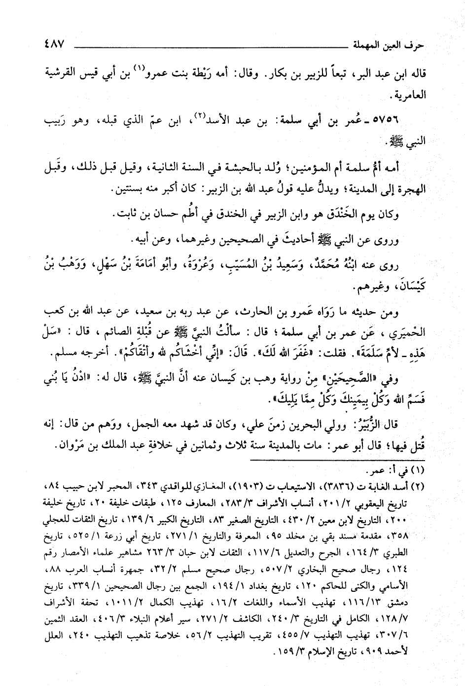 (٢) أسد الغابة ت (٣٨٣٦) ، الاستيعاب ت (١٩٠٣) ، المغازي للواقدي ٣٤٣، المحبر لابن حبيب ٨٤، تاريخ اليعقوبي ٢/ ٢٠١، أنساب الأشراف ٣/ ٢٨٣، المعارف ١٢٥، طبقات خليفة ٢٠، تاريخ خليفة ٢٠٠، التاريخ لابن معين ٢/ ٤٣٠، التاريخ الصغير ٨٣، التاريخ الكبير ٦/ ١٣٩، تاريخ الثقات للعجلي ٣٥٨، مقدمة مسند بقي بن مخلد ٩٥، المعرفة والتاريخ ١/ ٢٧١، تاريخ أبي زرعة ١/ ٥٢٥، تاريخ الطبري ٣/ ١٦٤، الجرح والتعديل ٦/ ١١٧، الثقات لابن حبان ٣/ ٢٦٣ مشاهير علماء الأمصار رقم ١٢٤، رجال صحيح البخاري ٢/ ٥٠٧، رجال صحيح مسلم ٢/ ٣٢، جمهرة أنساب العرب ٨٨، الأسامي والكنى للحاكم ١٢٠، تاريخ بغداد ١/ ١٩٤، الجمع بين رجال الصحيحين ١/ ٣٣٩، تاريخ دمشق ١٣/ ١١٦، تهذيب الأسماء واللغات ٢/ ١٦، تهذيب الكمال ٢/ ١٠١١، تحفة الأشراف ٧/ ١٢٨، الكامل في التاريخ ٣/ ٢٤٠، الكاشف ٢/ ٢٧١، سير أعلام النبلاء ٣/ ٤٠٦، العقد الثمين ٦/ ٣٠٧، تهذيب التهذيب ٧/ ٤٥٥، تقريب التهذيب ٢/ ٥٦، خلاصة تذهيب التهذيب ٢٤٠، العلل لأحمد ٩٠٩، تاريخ الإسلام ٣/ ١٥٩.