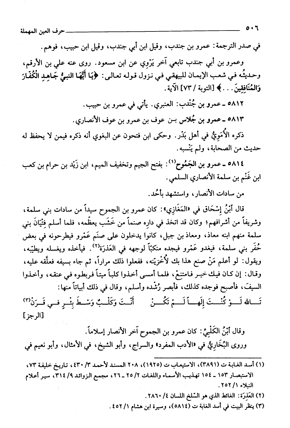 (٣) ينظر البيت في أسد الغابة ت (٥٨١٤) ، وسيرة ابن هشام ١/ ٤٥٢.